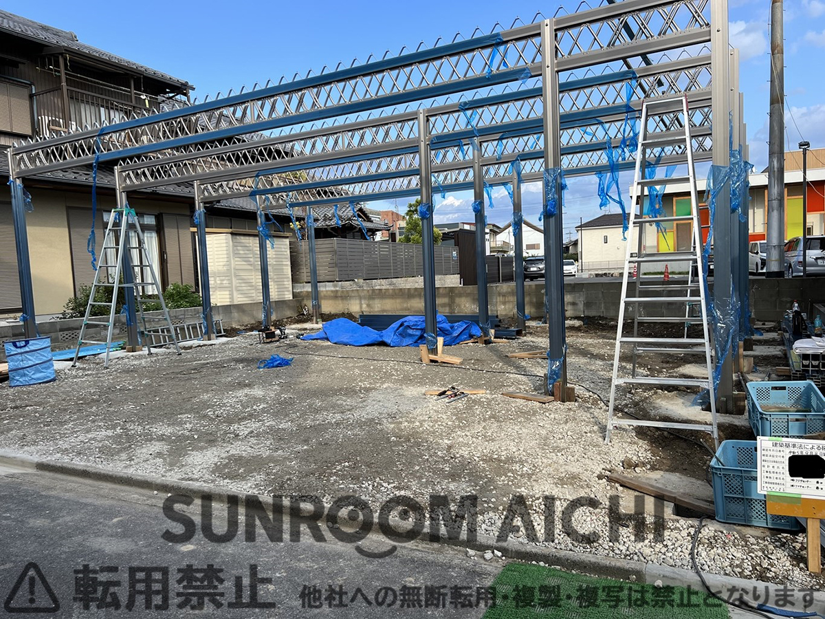 名古屋エリアセッパンカーポートシェルポートガレージ大型 間口10m×奥行10m 高さ4m 確認申請