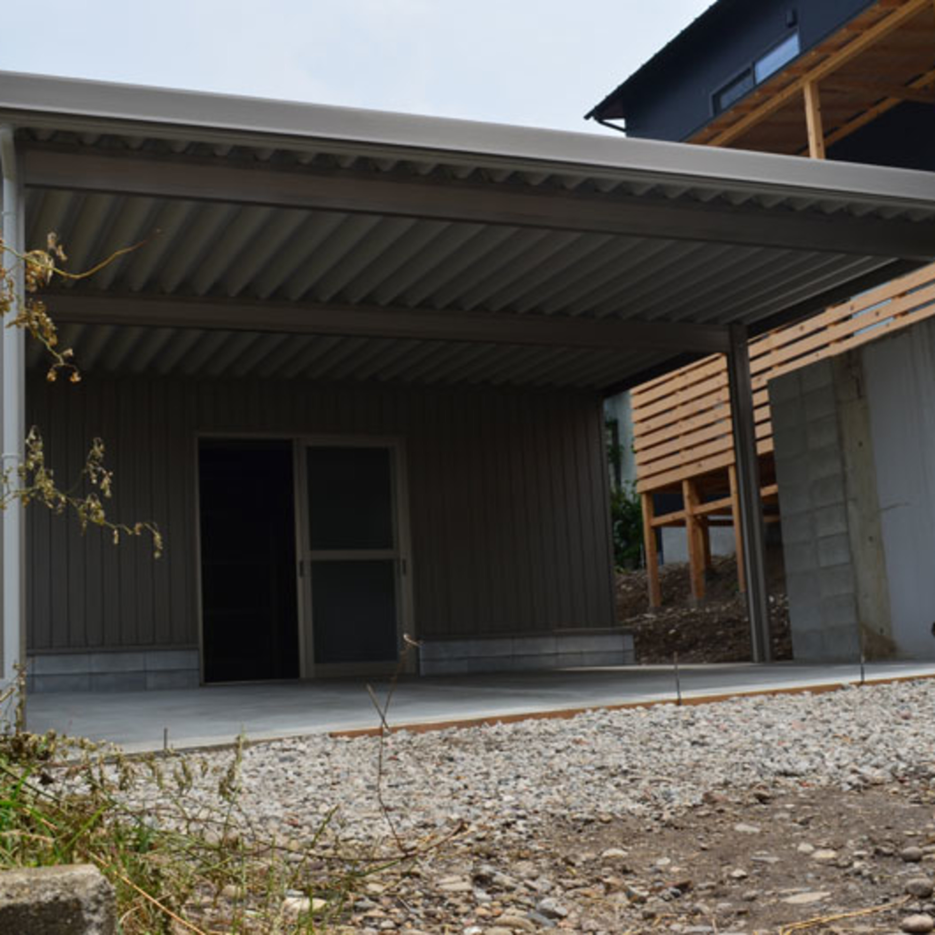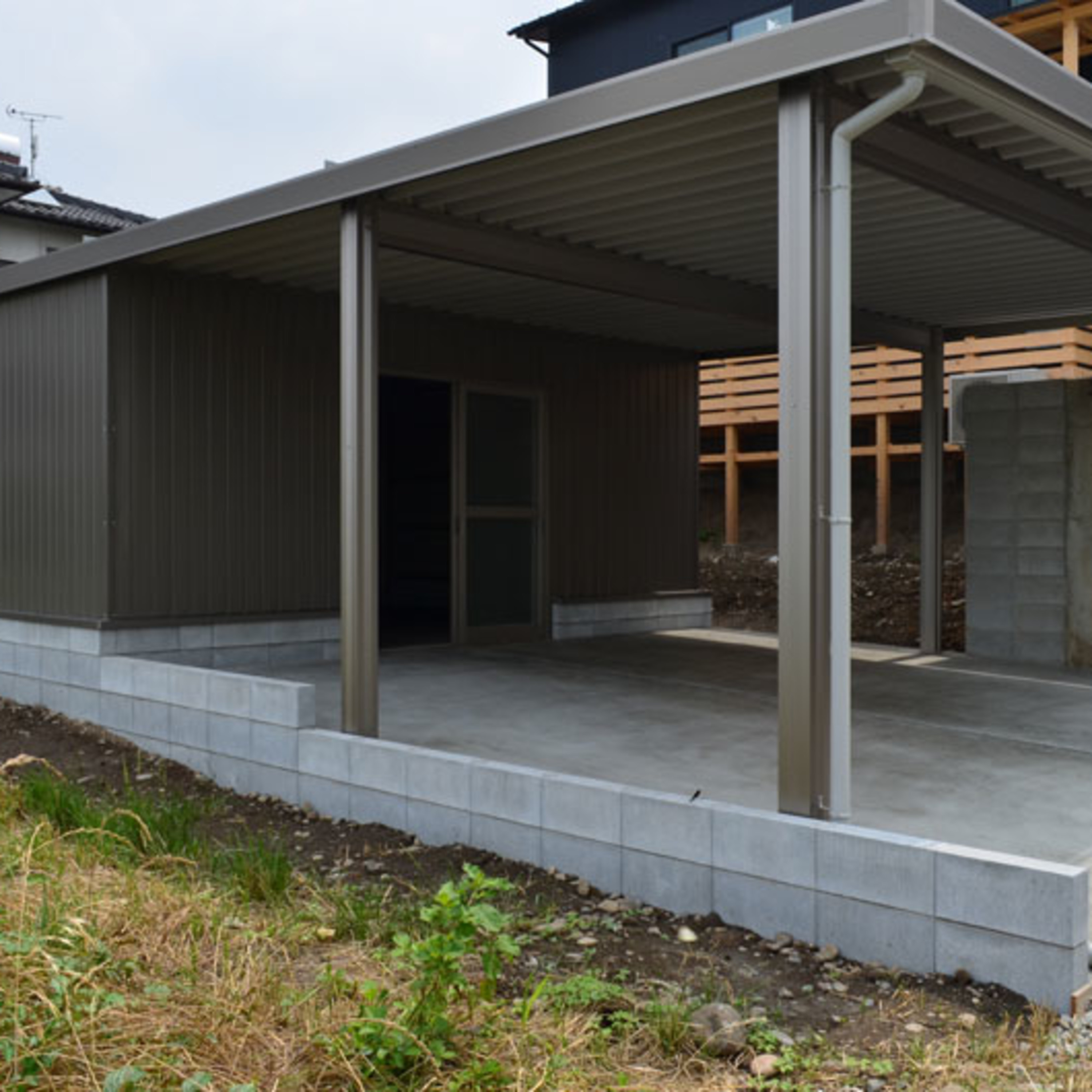 今回は簡易的というよりは、ブロックを積んで水切りもつけておりますので、気密性はないですが、雨も非常に入りづらい仕様になっております。