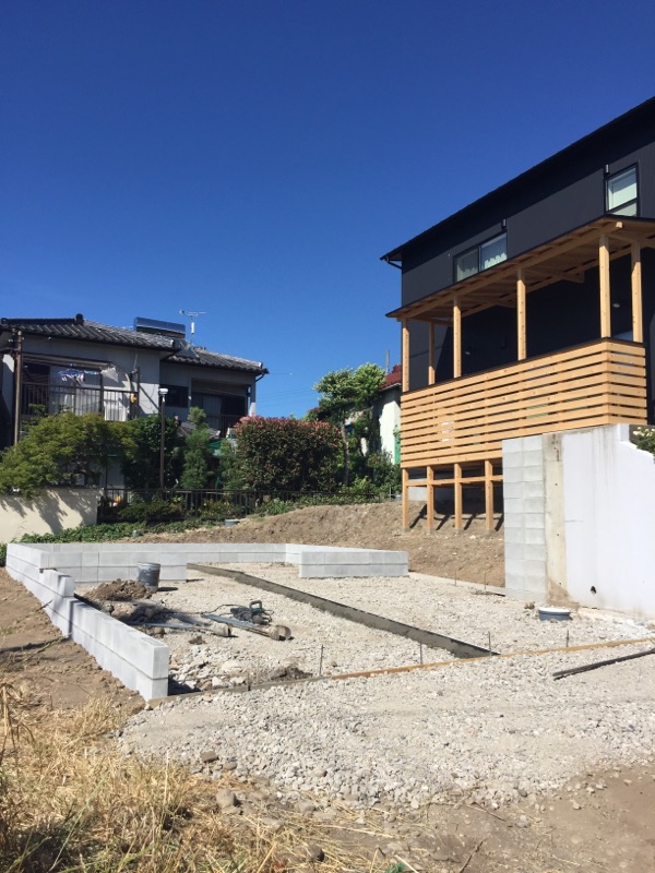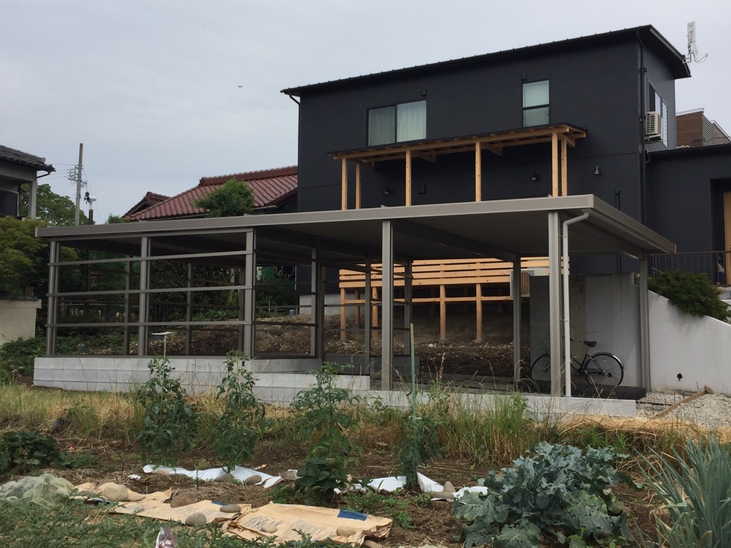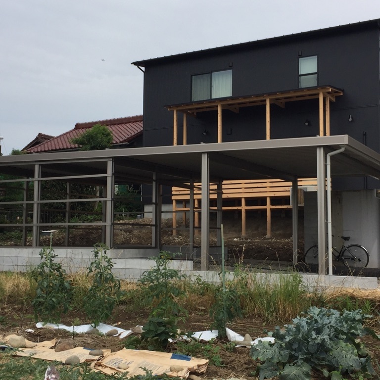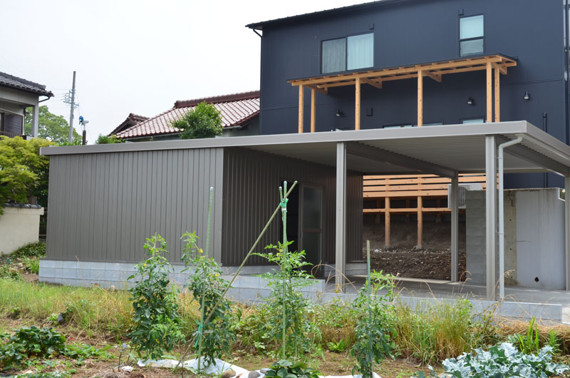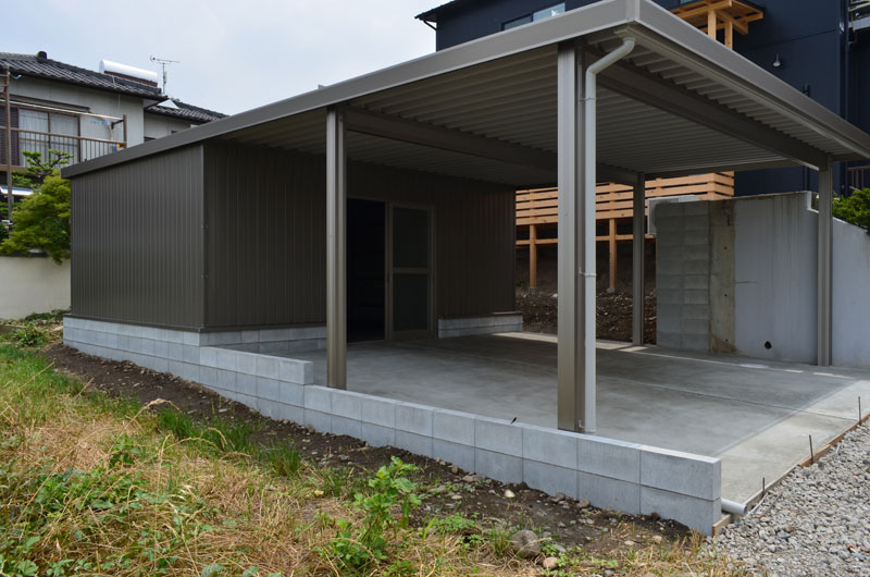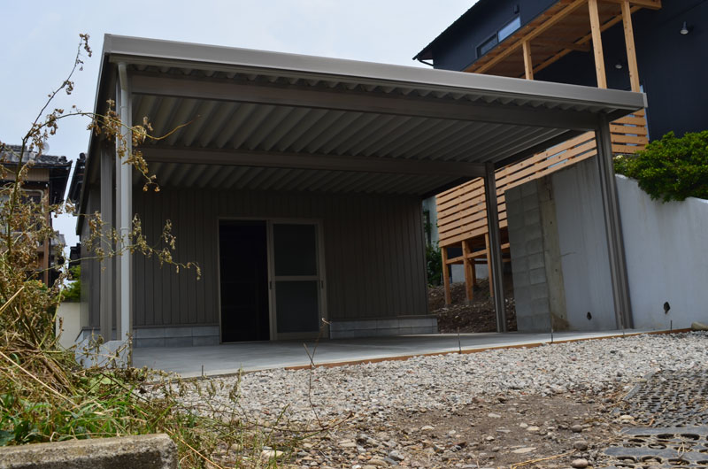手前はお車駐車スペース、後方は多目的スペースになります。後方の多目的スペースはトタンで囲って完成です。