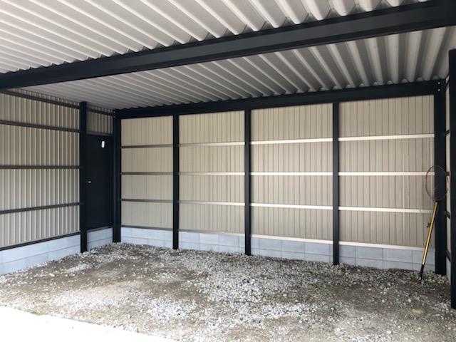 知多市シェルポート2台用ガレージ仕様(ガルバリウム鋼板囲い)