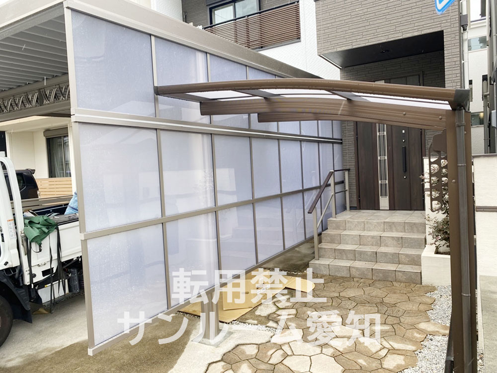 セッパンカーポートの右側にはサイドパネルを設置しているのでしっかりプライバシーを保護。