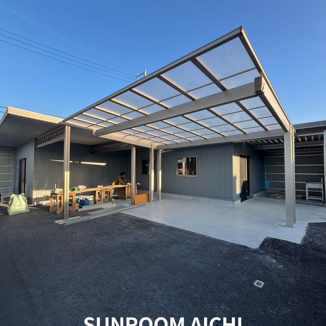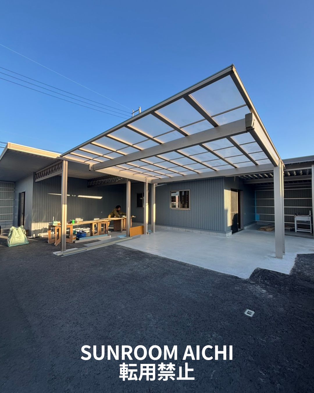 | 施工内容 | セッパンカーポートシェルポートガレージ、ガルバリウム鋼板、大型工事、ルーム仕様、既存カーポート設 |