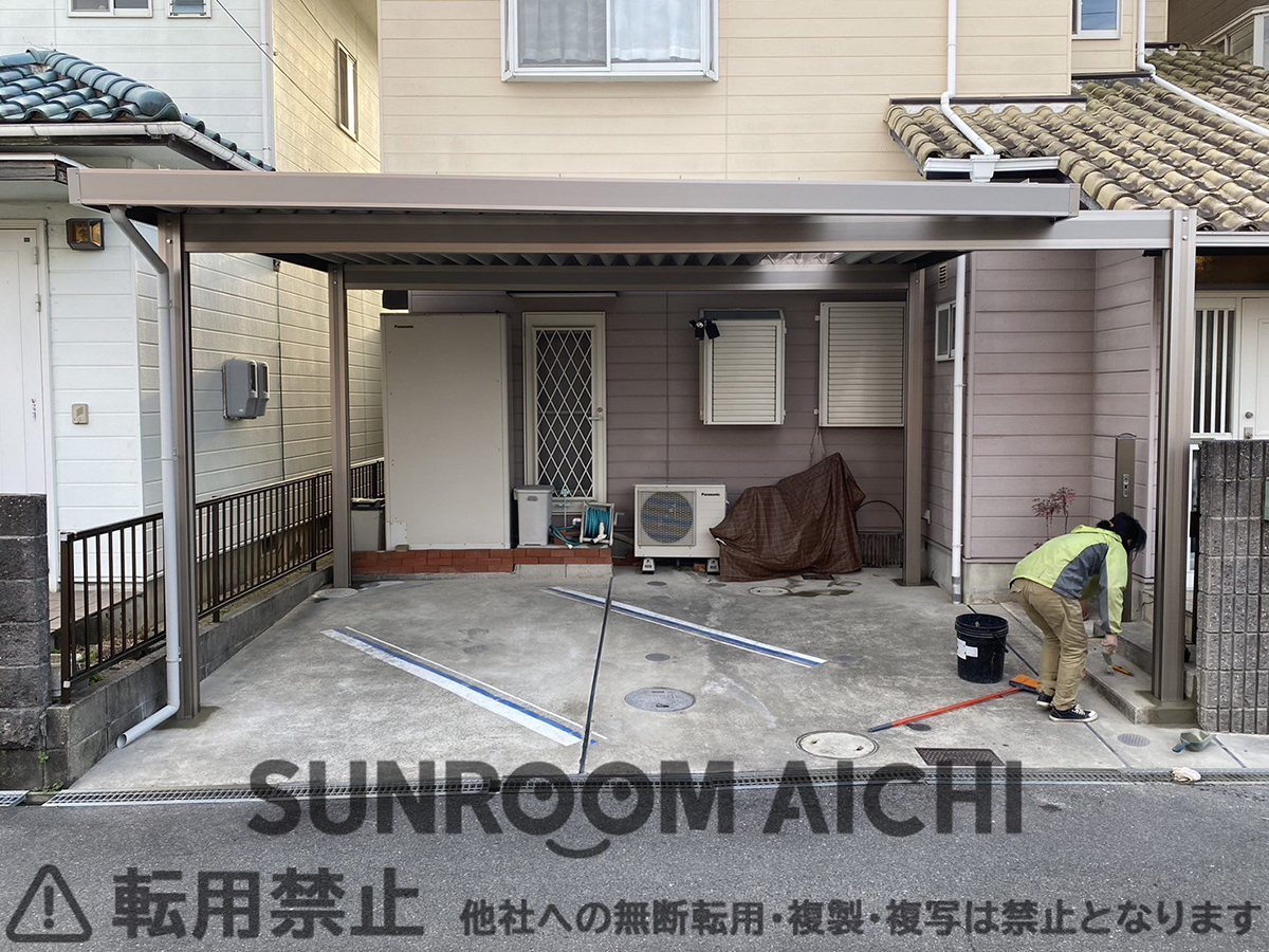 | 施工内容 | セッパンカーポート工事 ハツリ工事 残土処分 斜めカット |