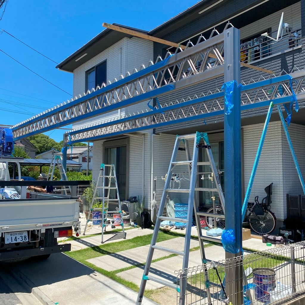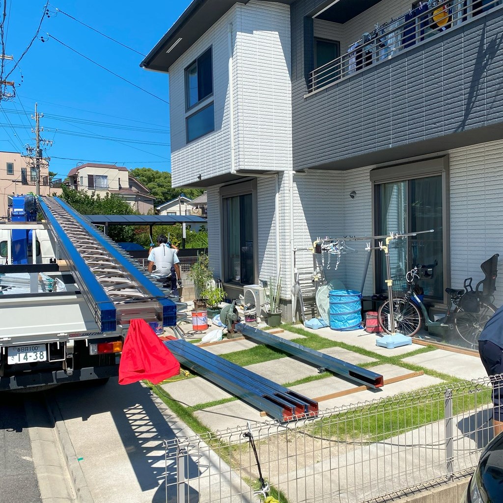 | 施工内容 | カーポート工事 ハツリ工事 セメント仕上げ 残土処分 ユニッククレーン作業 |