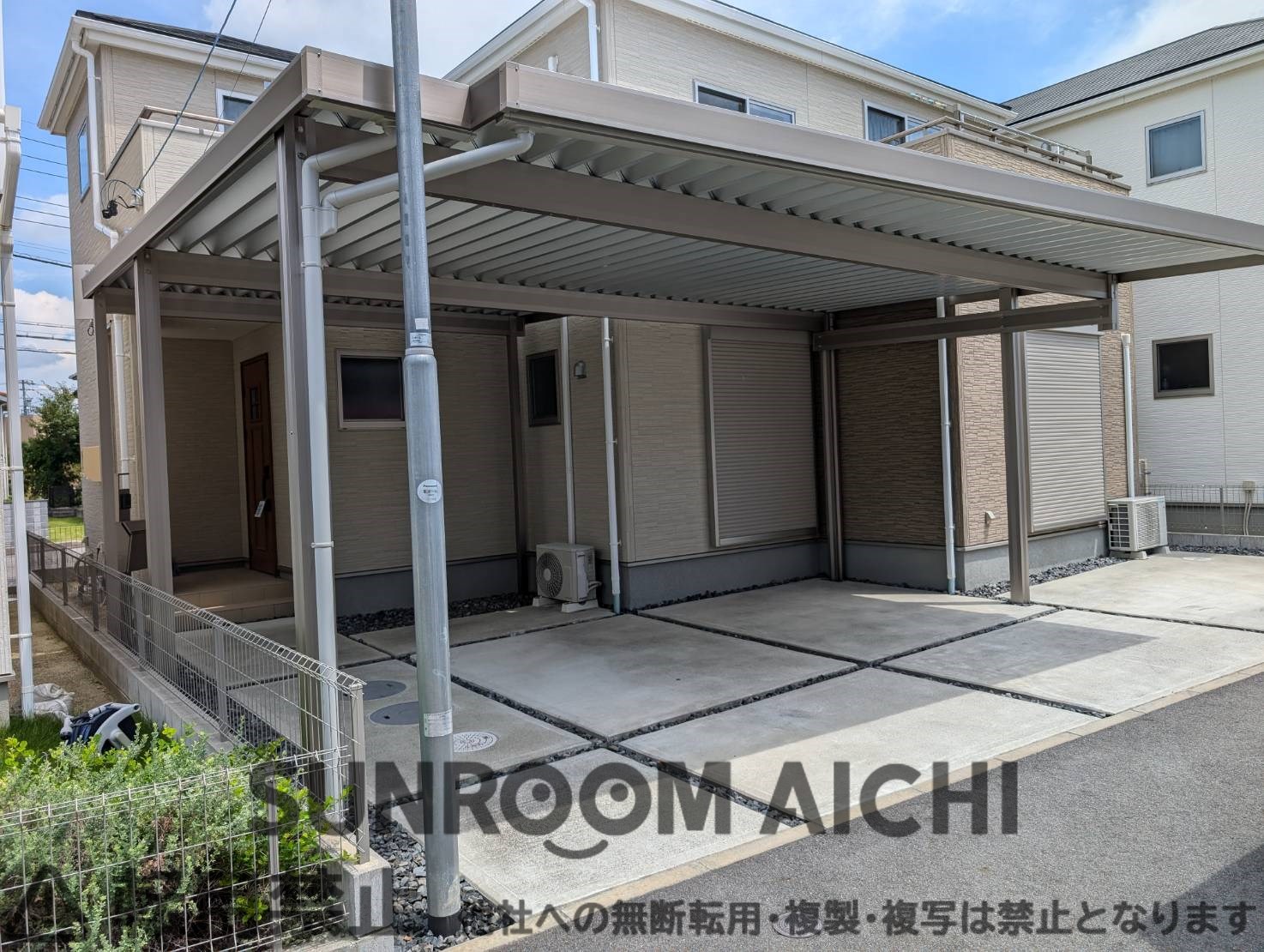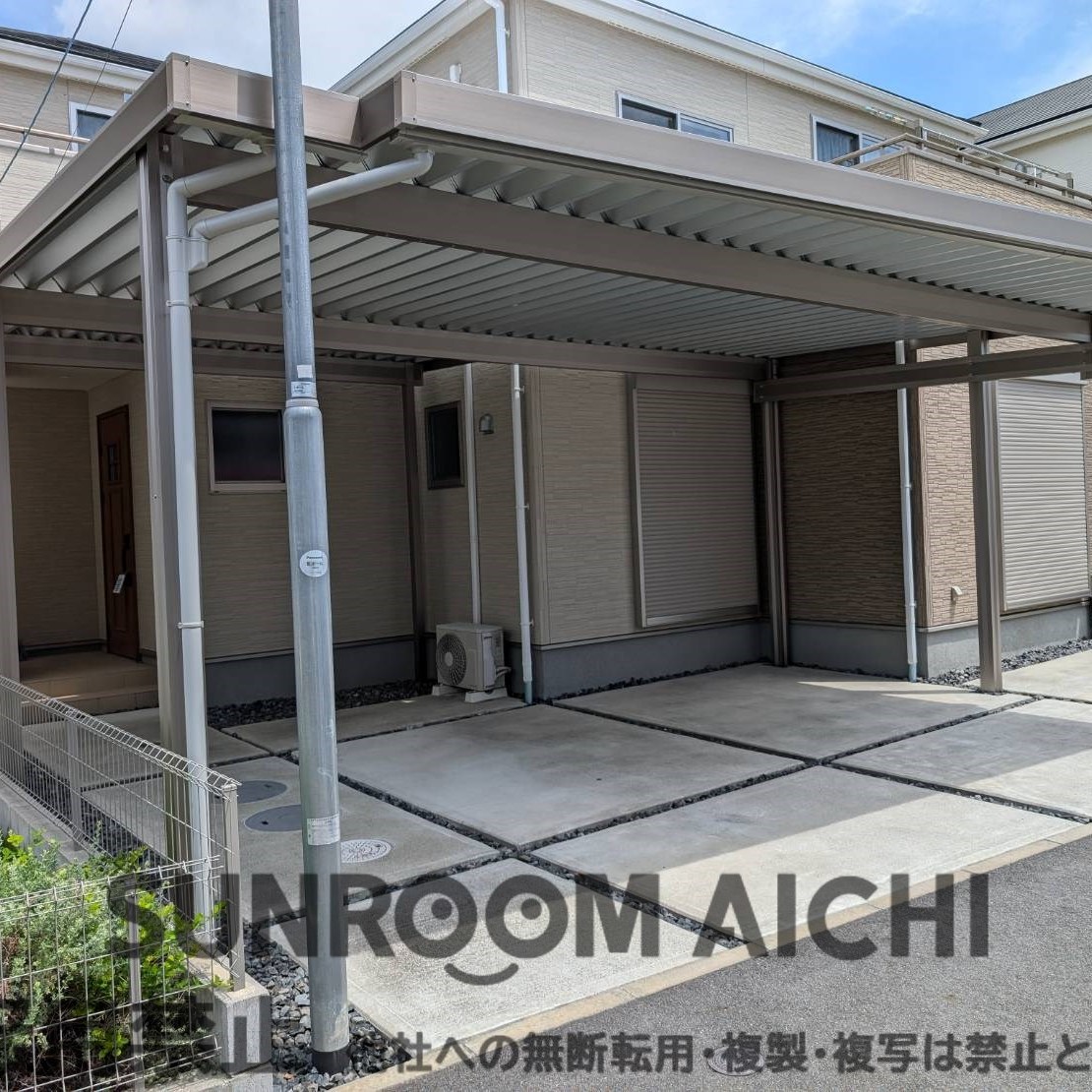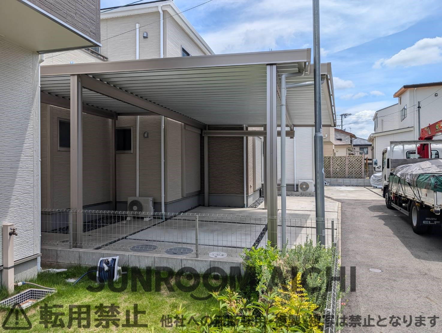 尾張エリアセッパンカーポート シェルポート変形L型施工 空中柱採用