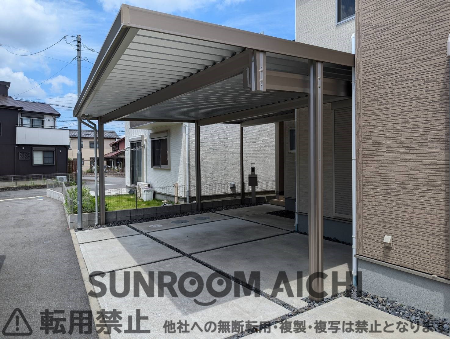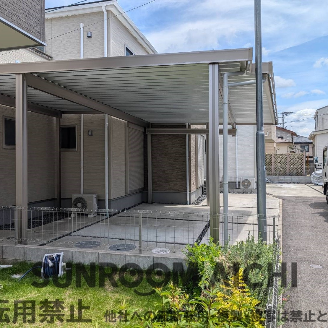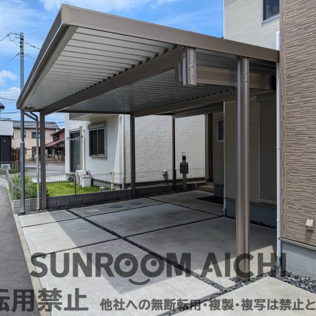尾張エリアセッパンカーポート シェルポート変形L型施工 空中柱採用