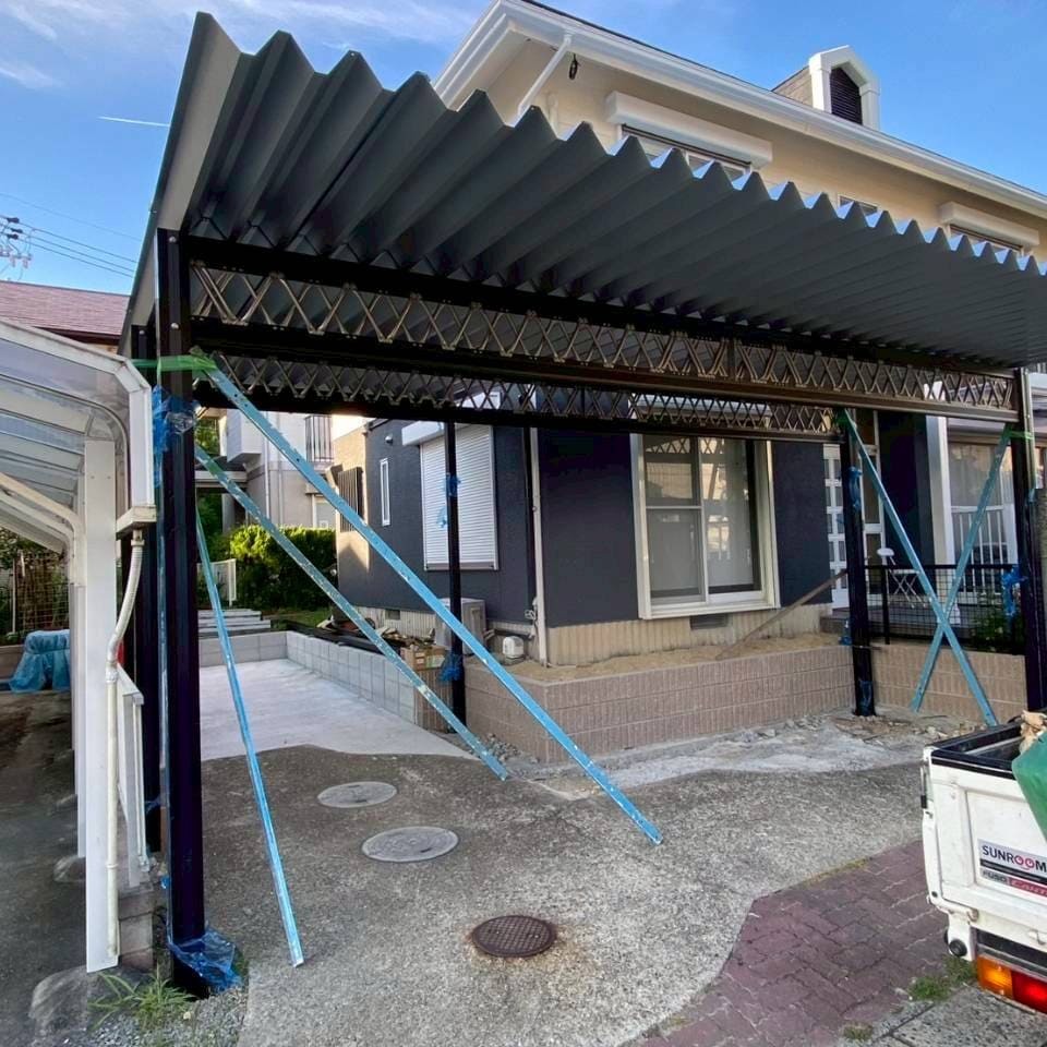尾張エリアに、ブラックが映えるL型セッパンカーポートが完成。
