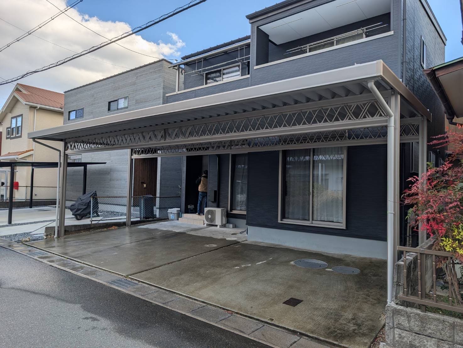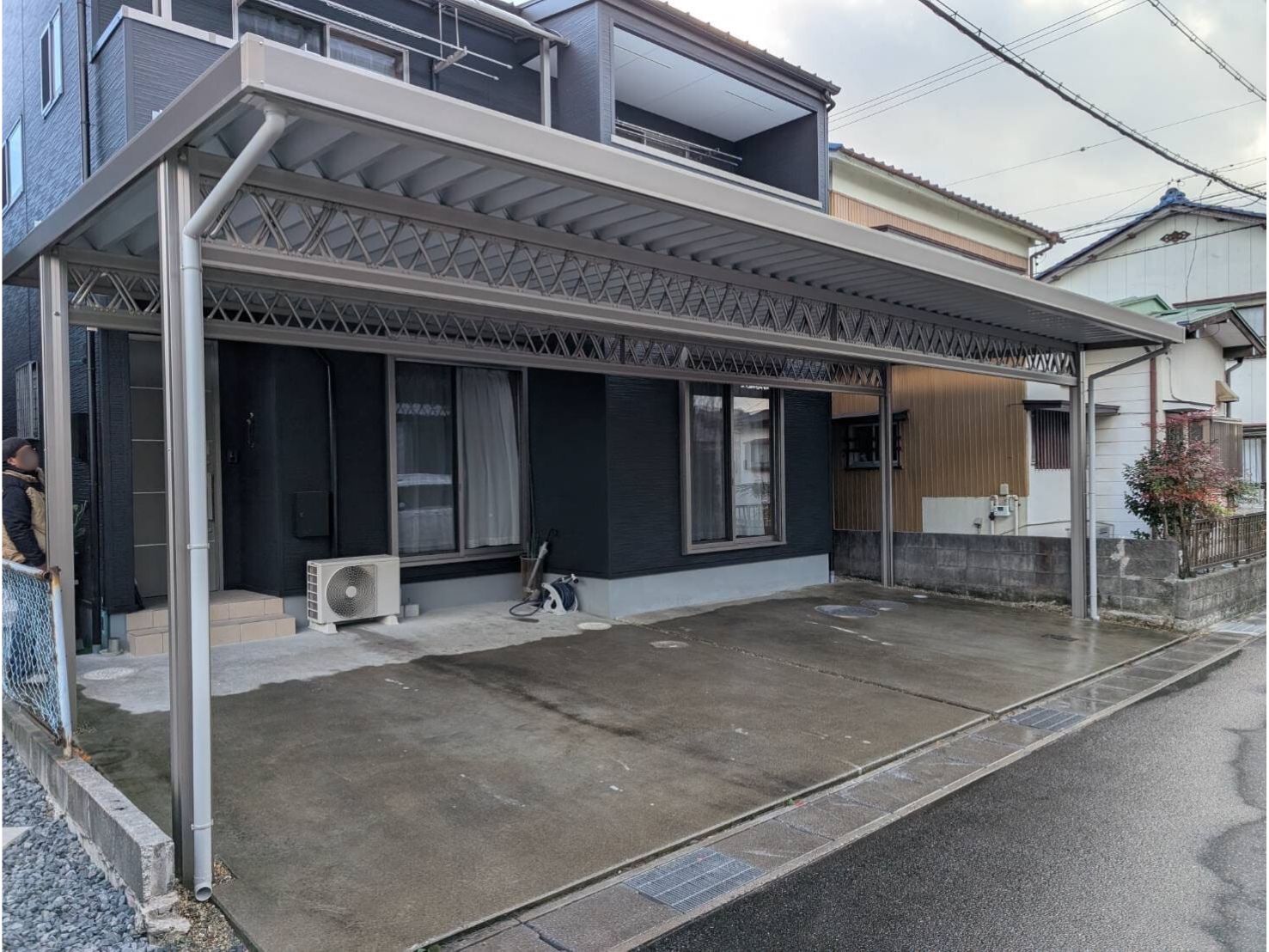 施工期間は約2日間。スピーディーかつ丁寧な施工で、快適性・耐久性・デザイン性を兼ね備えたカーポートが完成しました。