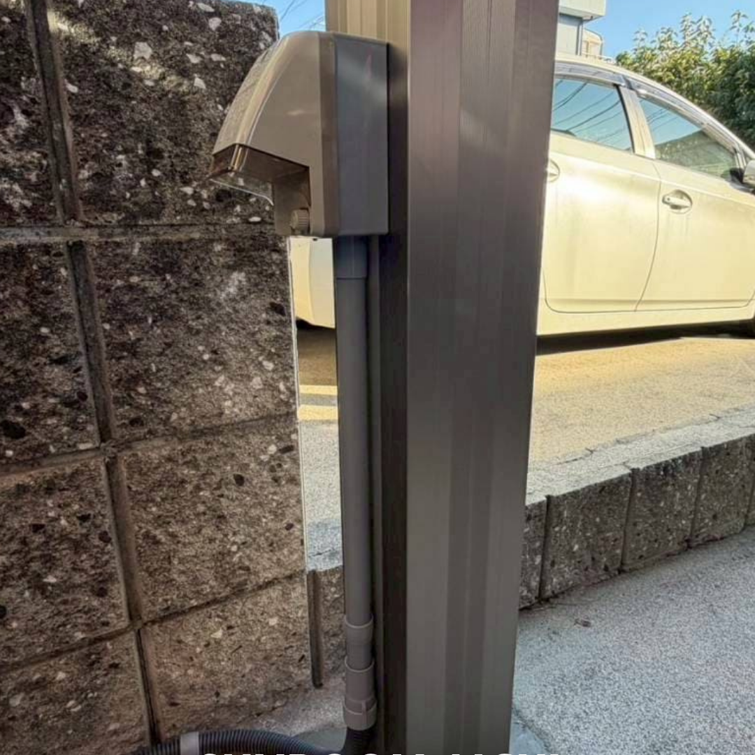 施工前には既存の植栽を撤去・処分し、スペースをすっきりと整えました。さらに電気コンセントを設置することで、電気自動車の充電や作業時の電源確保など、日常の利便性を高めています。