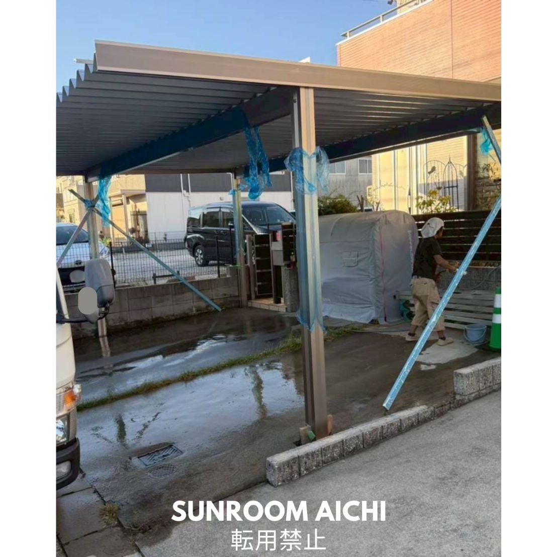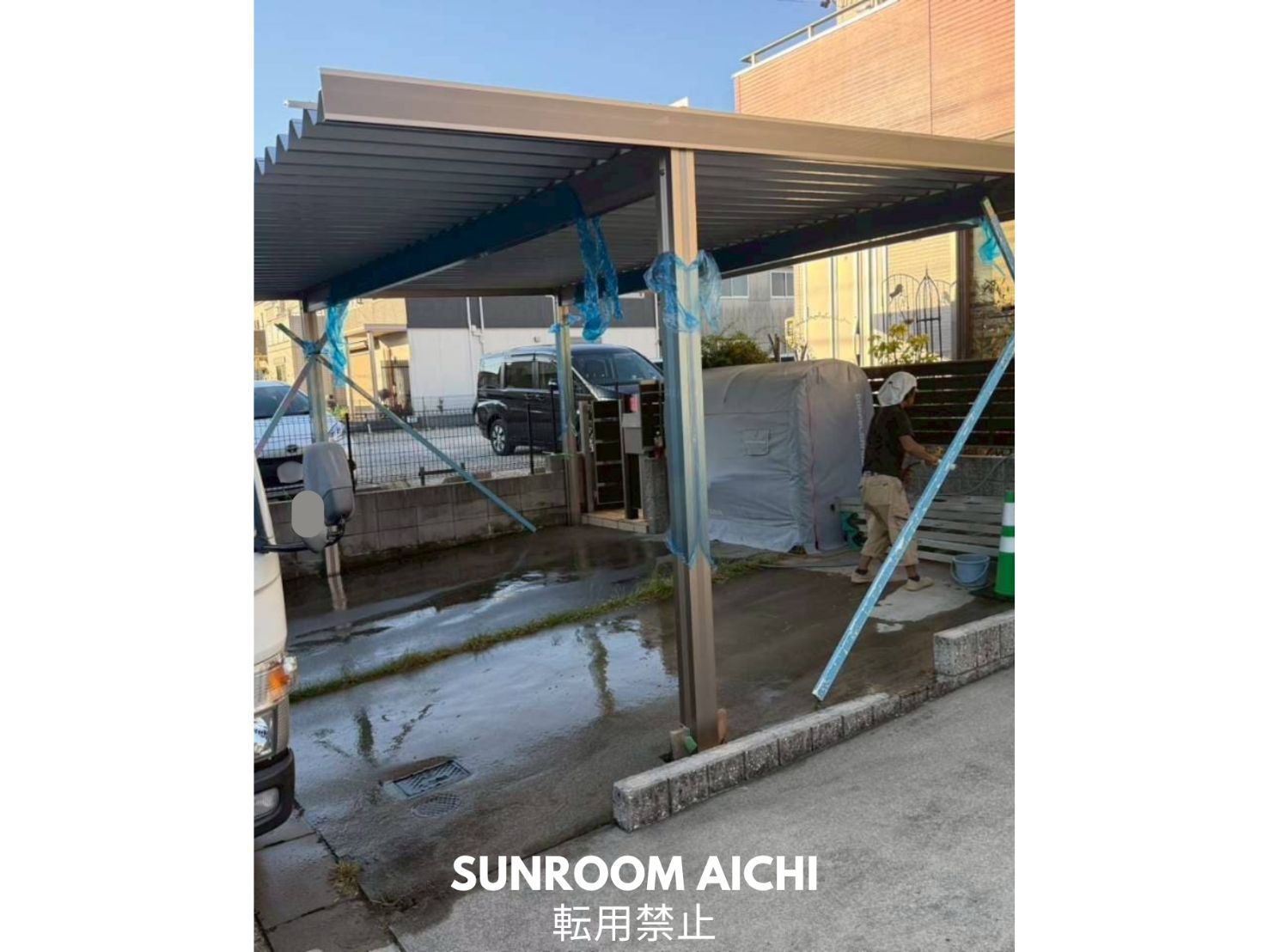 | 施工内容 | セッパンカーポート 植栽撤去処分 電気コンセント付き |