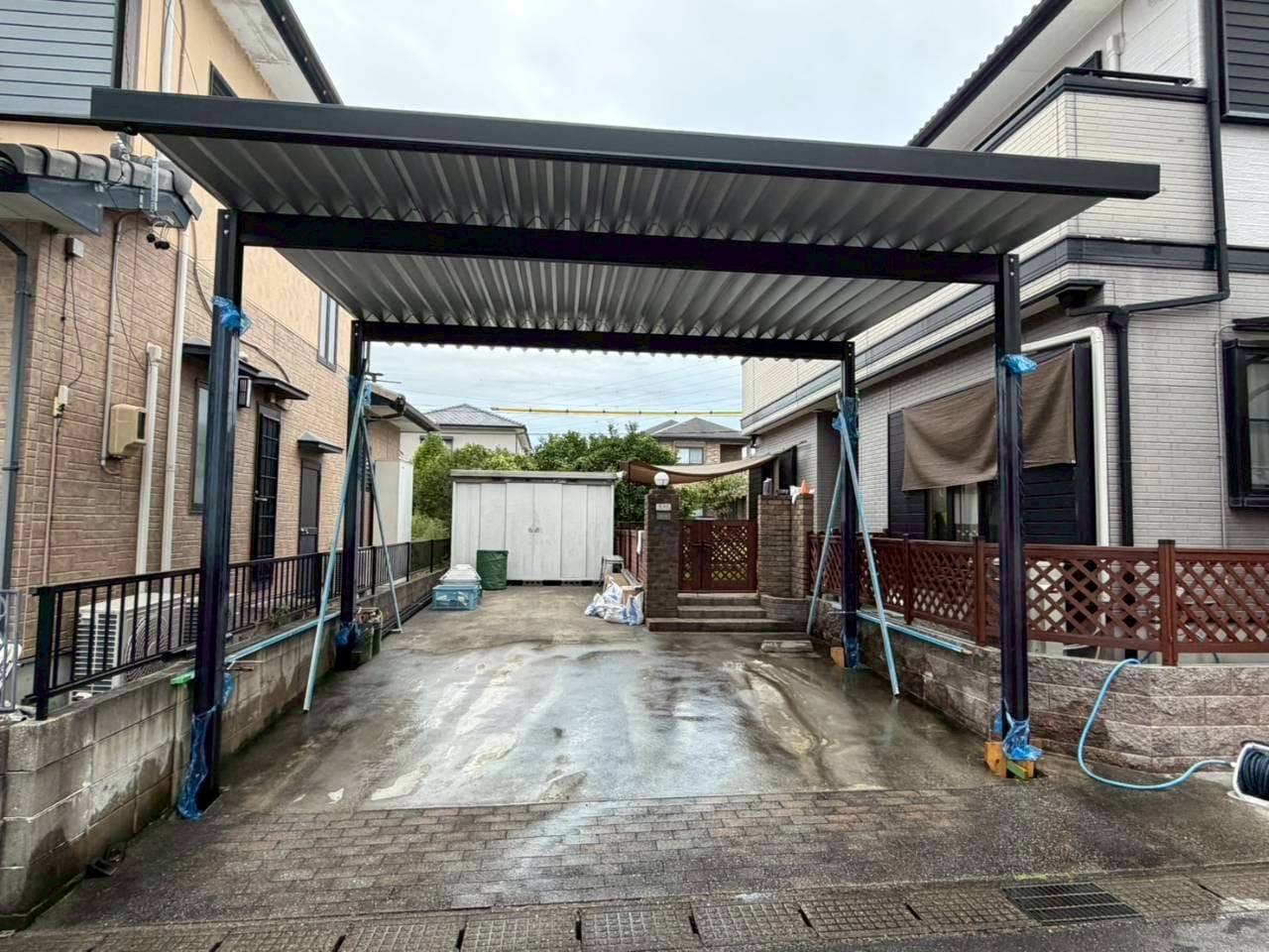 施工期間は約2日間。スピーディーかつ丁寧な施工で、快適性・耐久性・デザイン性を兼ね備えたカーポートが完成しました。