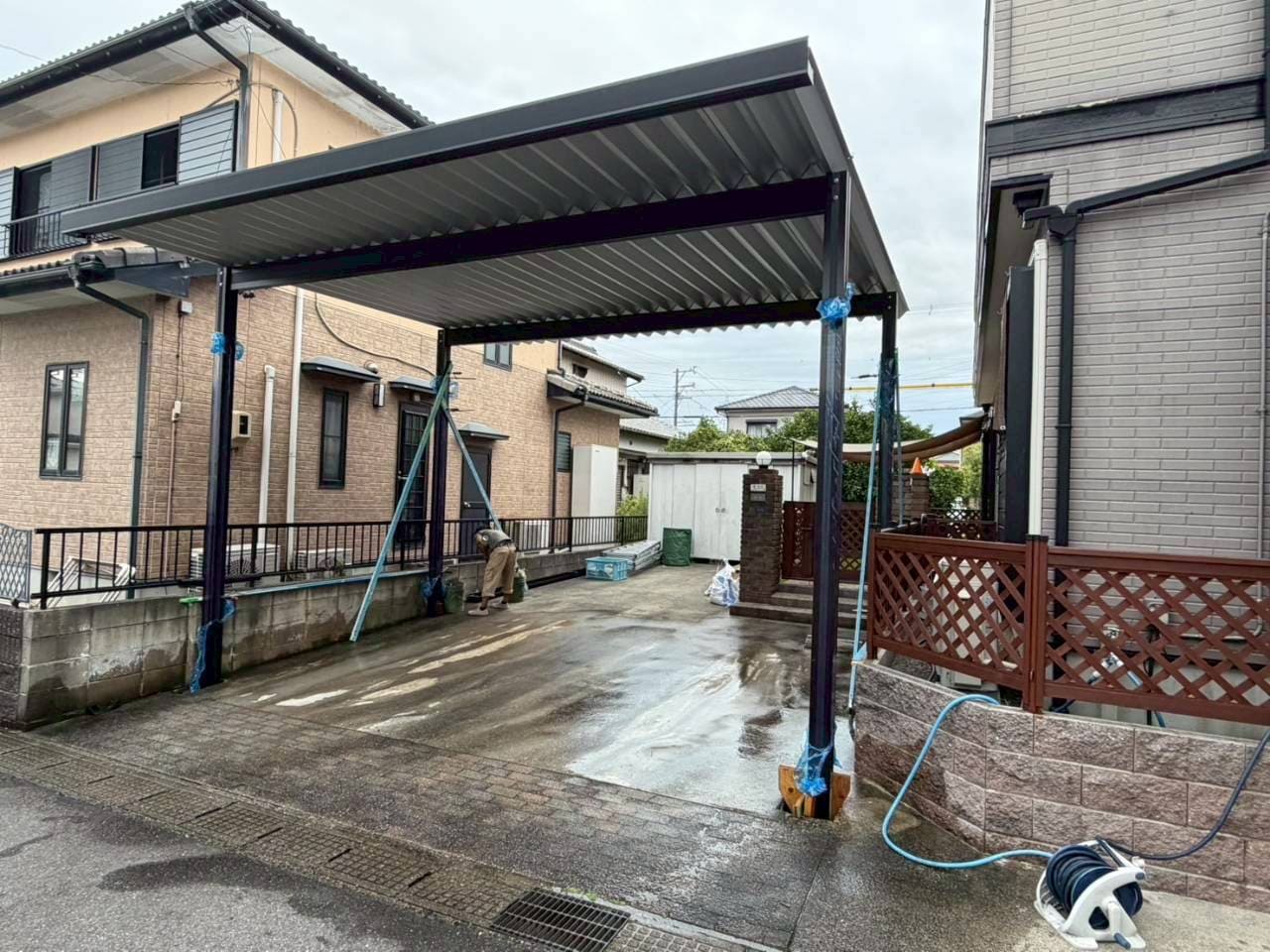 施工前には既存カーポートの撤去・処分を行い、スペースをすっきりと整えた上で新設。