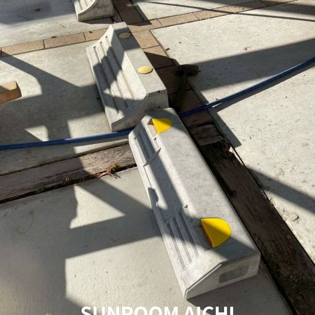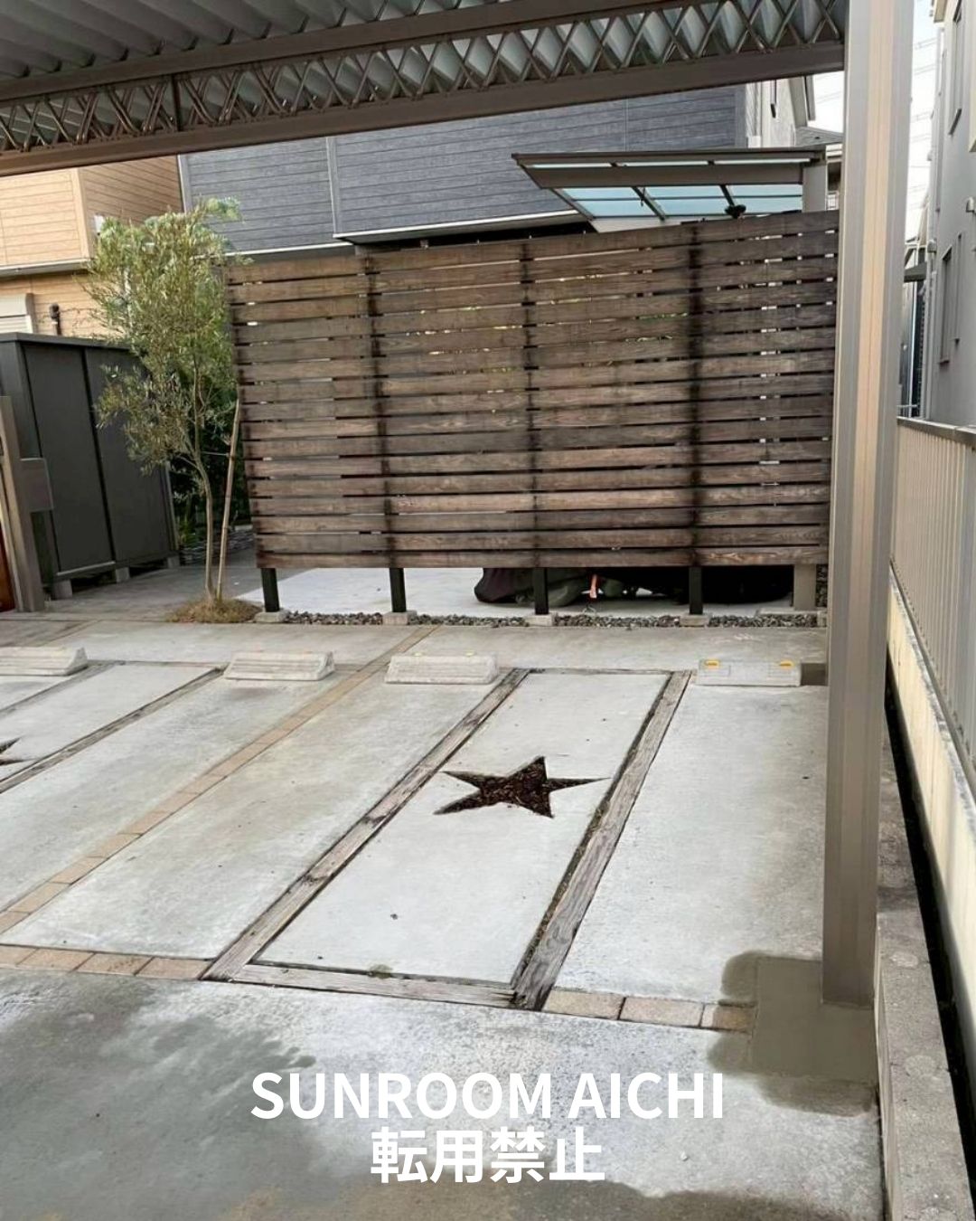 カラーは、既存の土間コンクリートのデザインを引き立てるシャイングレーを採用。さらに車止めブロックを設置し、安全性にも配慮しました。