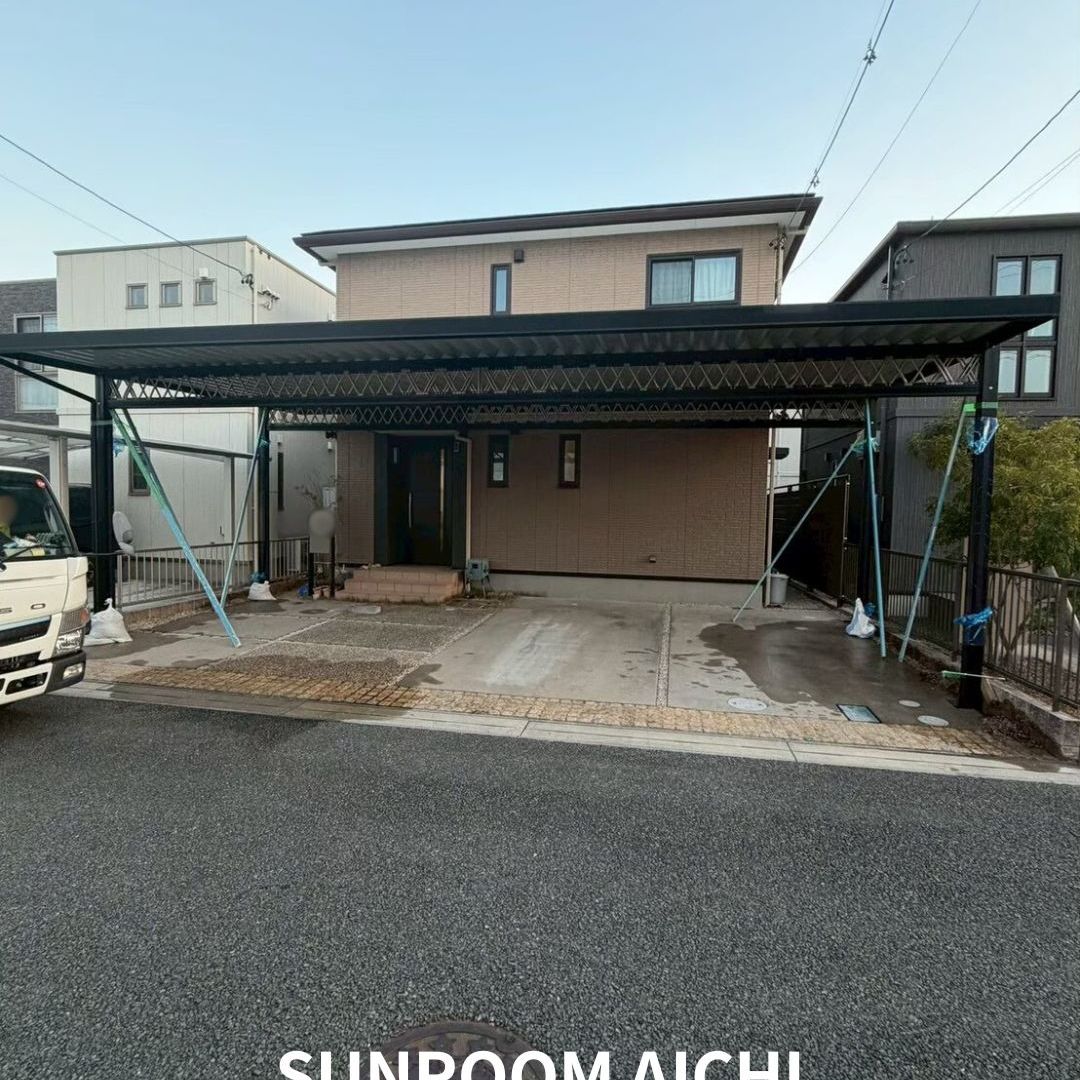 三河エリアにて、ロング柱のセッパンカーポート「シェルポート」を施工しました。