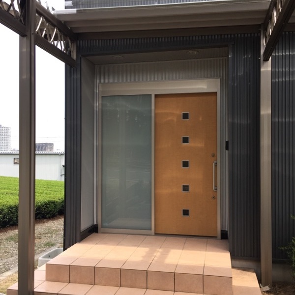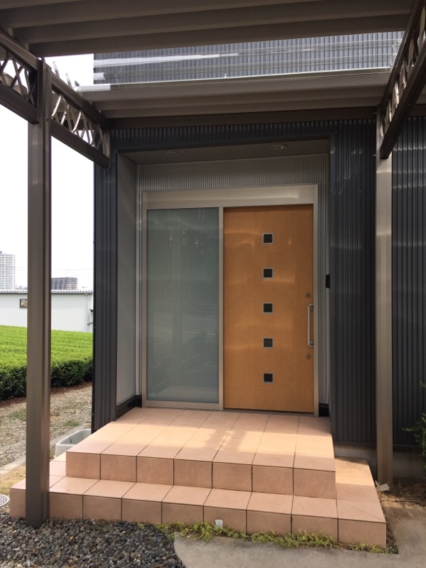 玄関ドアと地面のタイルデッキの上をいく設定にしております。