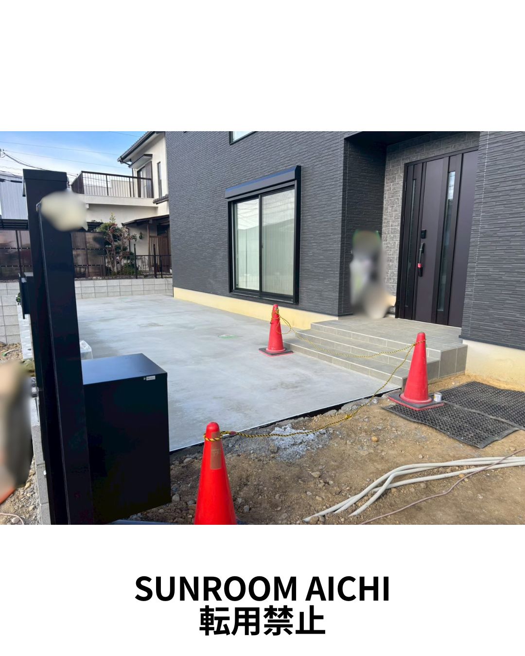 玄関前はコンクリート舗装を採用。