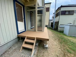 名古屋エリア サンルームソラリア デッキON仕様 正面折戸 一部すりガラス仕様 建物柱部切り欠き ステップ付き