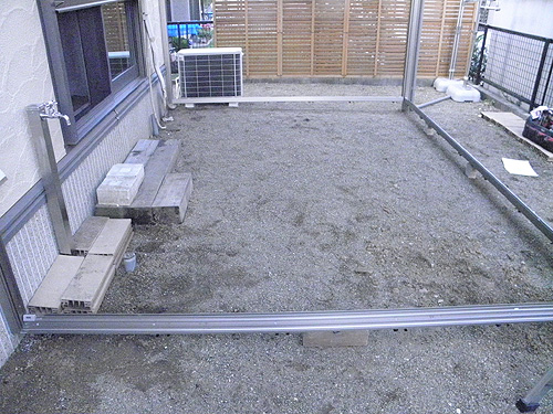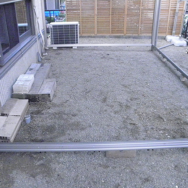 この度は、ほせるんです2土間納まりをお買い求めいただきまして、誠にありがとうございます。天候の関係で工期がずるずると延びてしまい申し訳ございません。まず本体を1、2日で施工完了。後に土間工事をします。セメントが乾くのを待ち、サッシを入れて完了です。本体からブロックの境界まで土間を打ちました。これで雨がまったく気にならない空間の完成です。ありがとうございました。