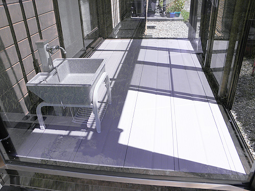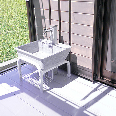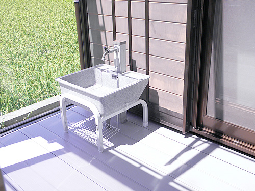 この度はほせるんです2をお買い求めいただき、誠にありがとうございます。水道をデッキの中に立ち上げたいとのことでしたので、外の水道をハツリ工事し、長い配管に取り替えて立ち上げます。お客様自身でご用意された水道受けをデッキの上に施工し、デッキを切り欠いて配管を通せば完了です。お客様一人一人の使用するニーズに対応させていただきます。ありがとうございました。