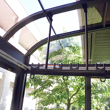 この度は、ほせるんです2をお買い求めいただき、誠にありがとうございます。上にベランダがあることで手が入らずに作業が出来ないこととシャッターが付いてるために取付できないとのことでしたが、弊社では可能です。フローリングはもっとも明るい色のノーワックスのもの。これもカタログには載っていません。完全オリジナルサンルームの出来上がりです。喜んでいただけて、何よりでございます。ありがとうございました。
