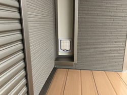 施工内容:サンルームの施工、シャッター部加工、防草シート敷き