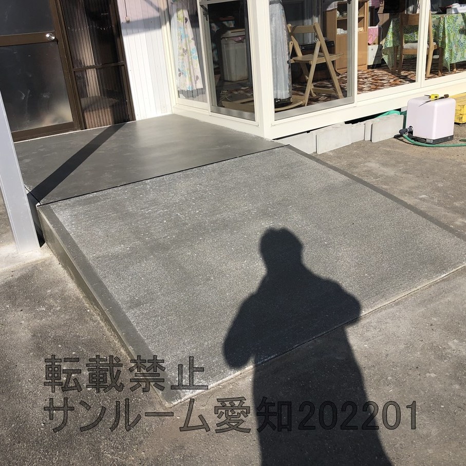| 施工内容 | サンルームの施工、独立テラスの施工、土工事、鋤取り、埋め戻し、ブロック積、土間打設、スロープ工事 |