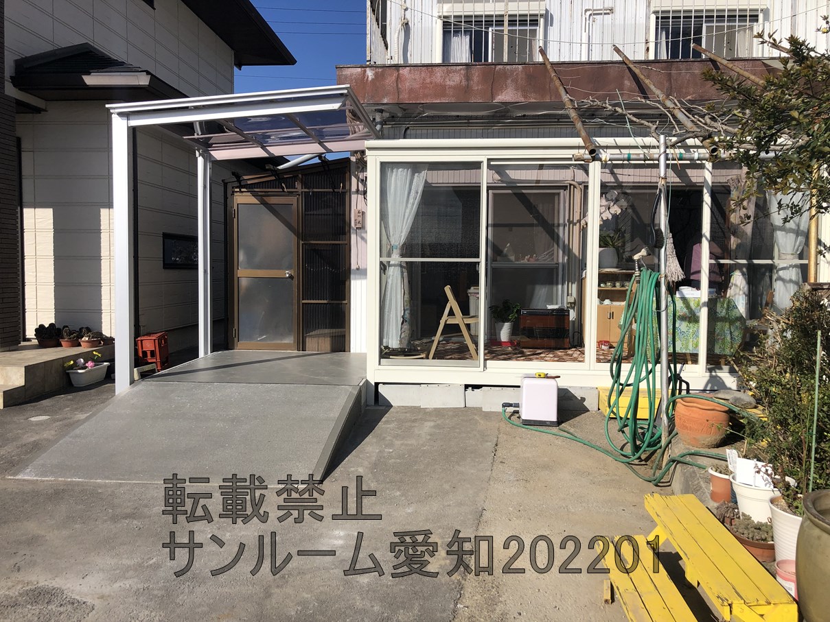 なかなか素晴らしい施工例がまた完成しました。外壁は電気配線などでサンルームの取付に少し工夫が必要でした。お客様の要望で独立テラスとスロープ工事を完了したら、本当に見違えるほどよくなって大変喜んでいただきました。「☆他社お断り物件☆とは他社が断った、何とか見積は出たが高額だった、何とか見積は出たが制限があった等も含みます」
