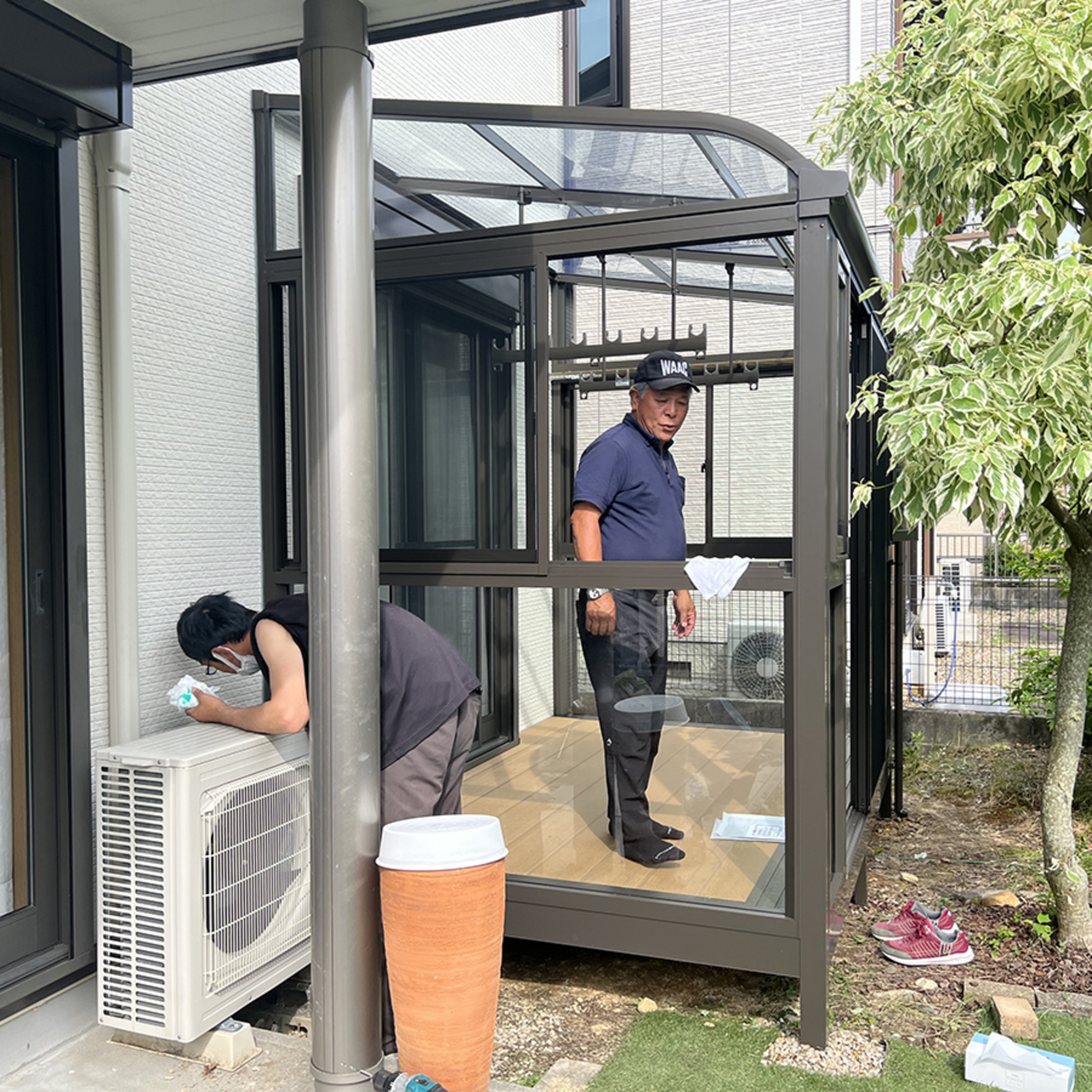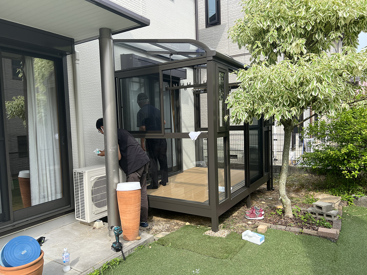 | 施工内容 | サンルームの施工、電気コンセント工事 |