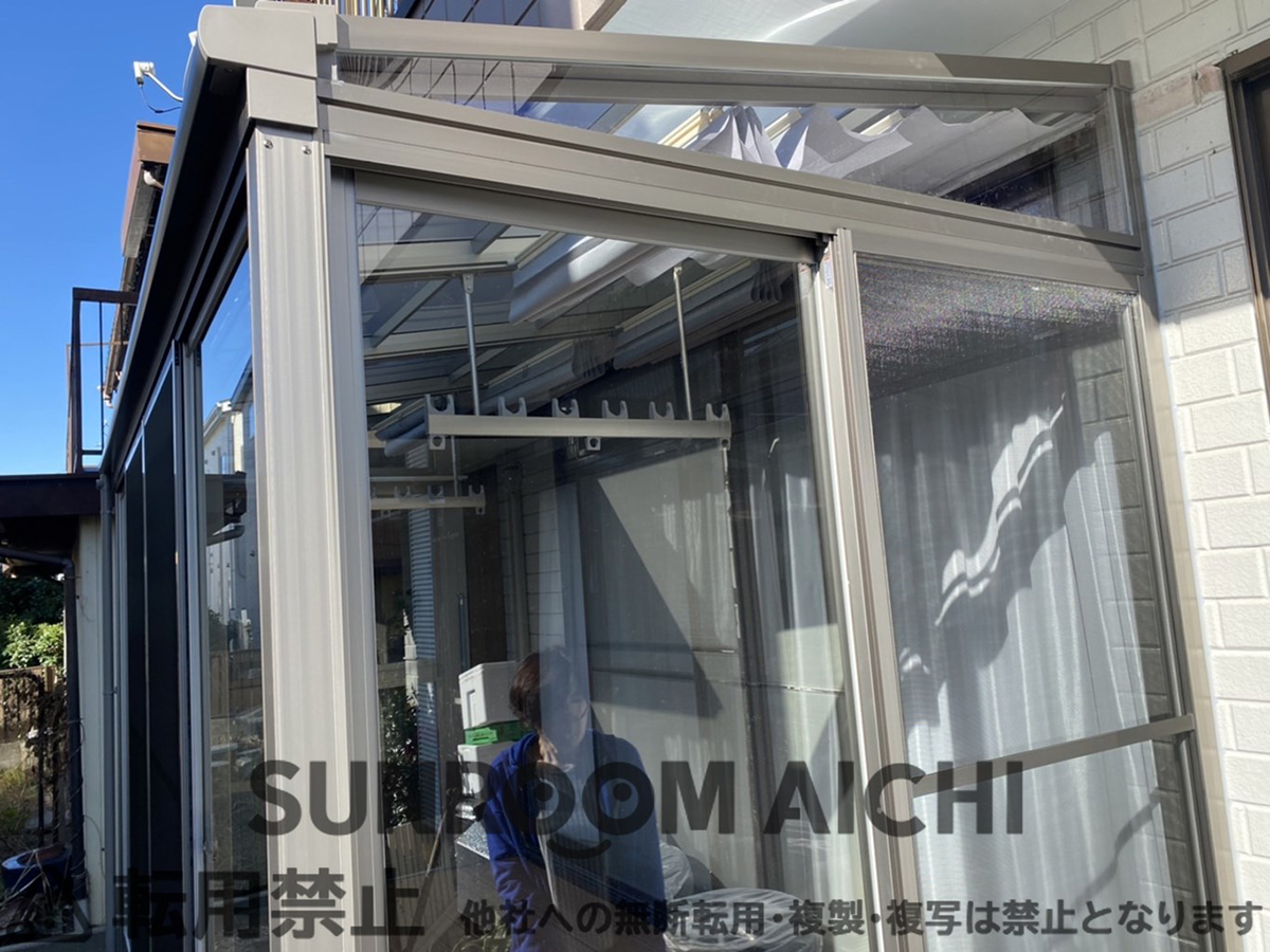 サンルーム、サニージュの取付施工です!オプション多数ですが、やっぱり内部日よけが最強オプションだと思います!!