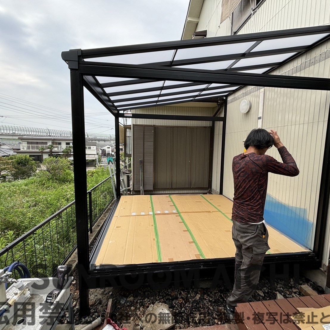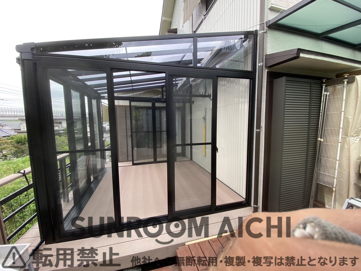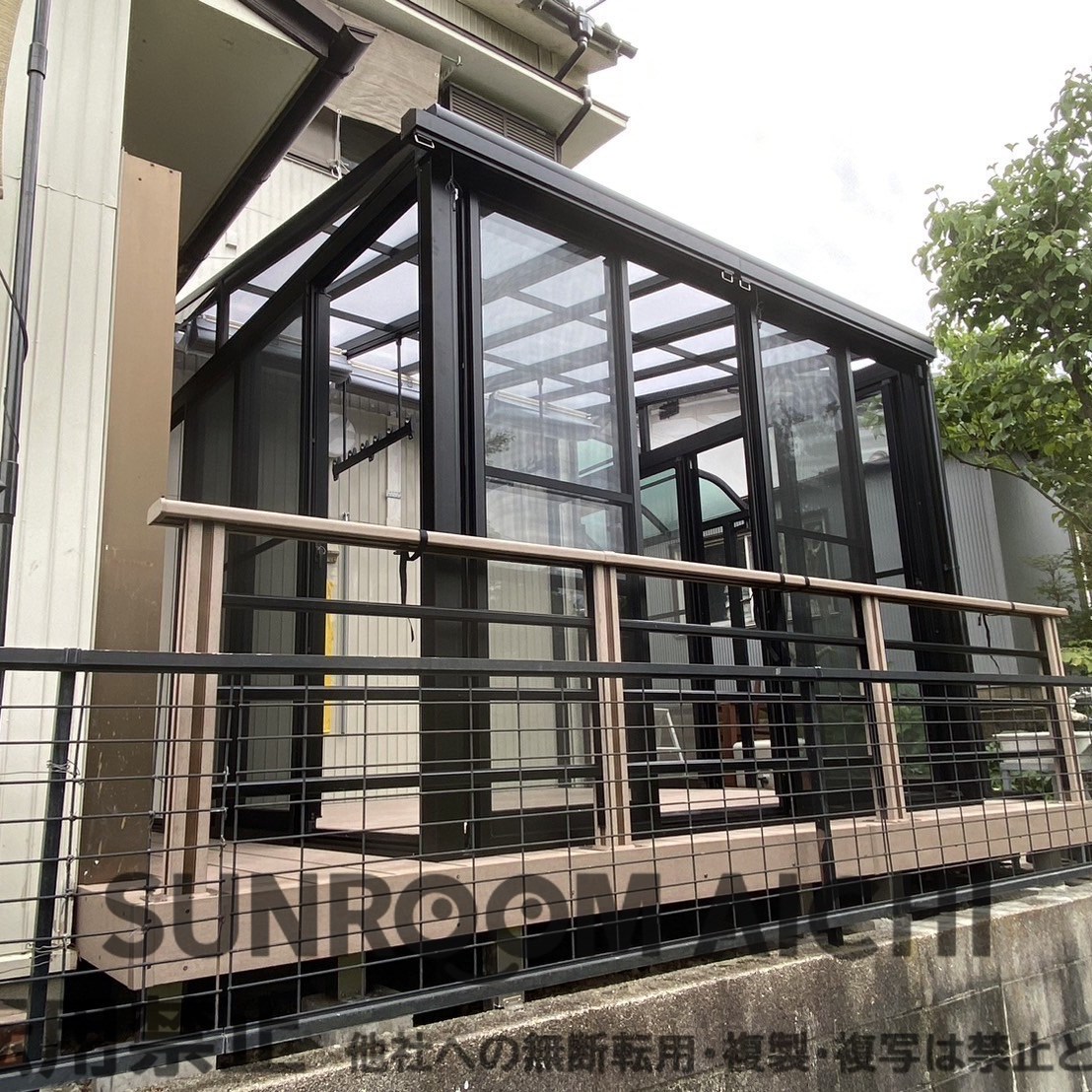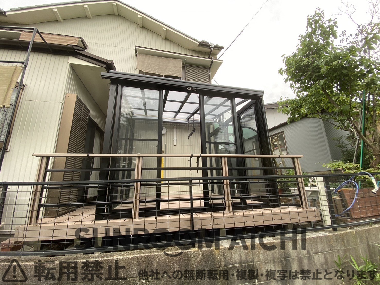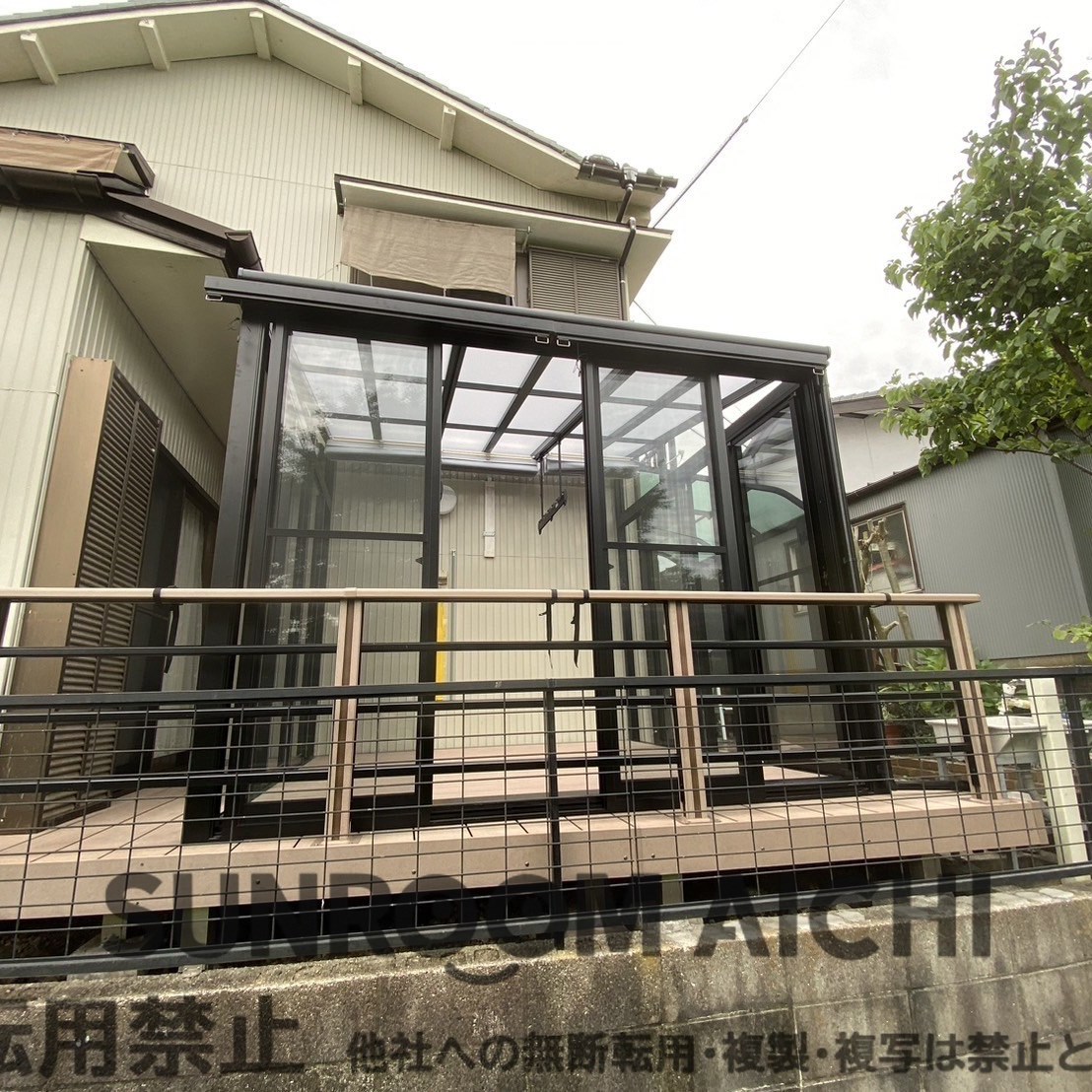 | 施工内容 | ☆他社対応不可物件☆既存ウッドデッキ解体撤去処分 既存サンルーム解体撤去処分 サンルーム新設工事 既存ウッドデッキ一部復旧工事つなぎ目 |
