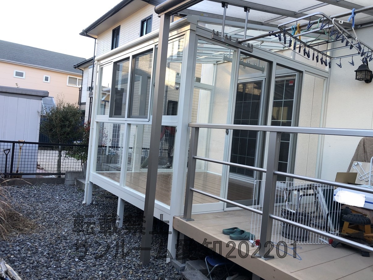 名古屋地区☆他社お断り物件☆LIXILサニージュ 床納まり 1.5間×9尺 既存テラス屋根の下に入れる