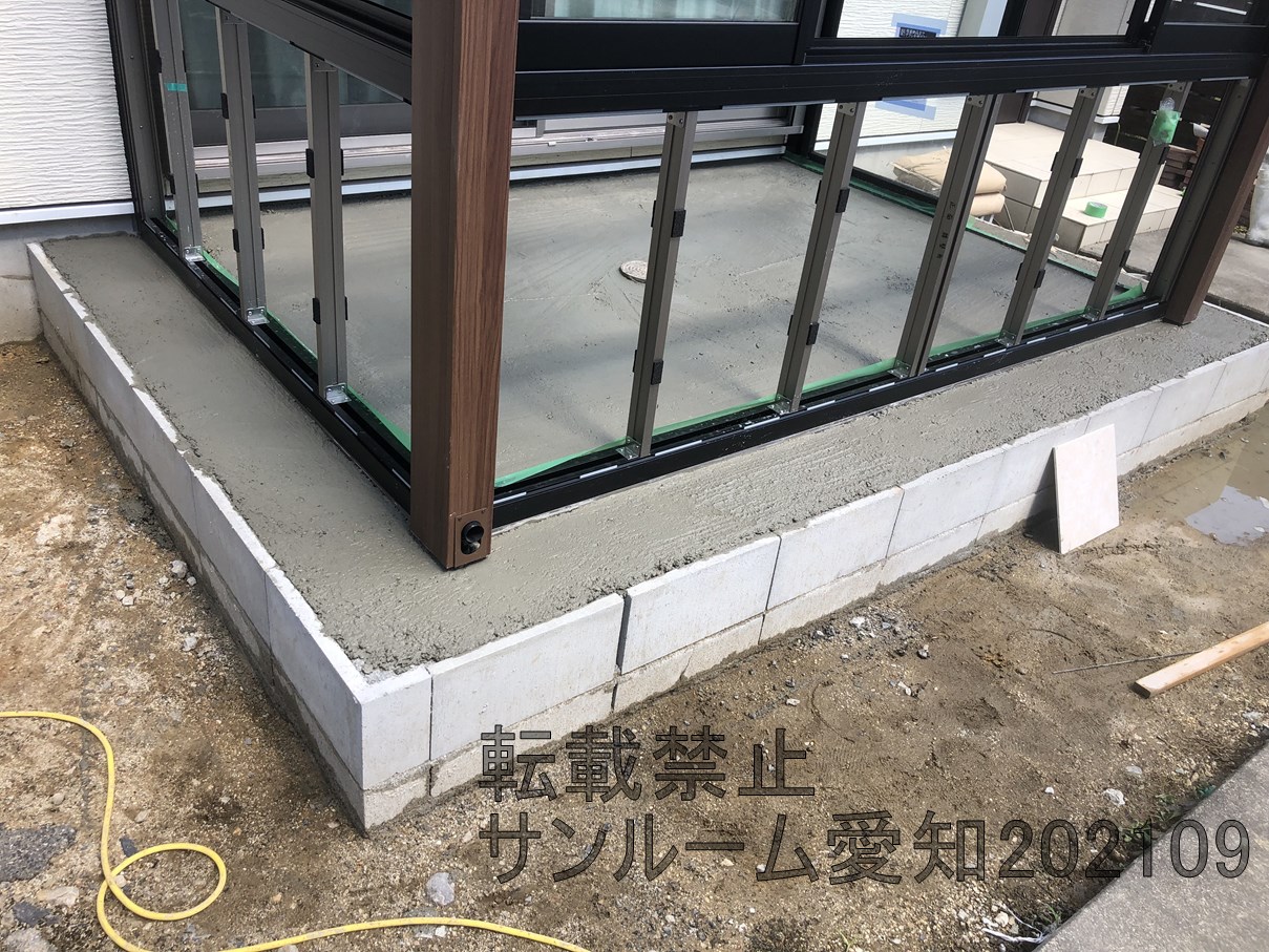 名古屋市LIXILガーデンルームGF 腰壁 床タイル納まり 屋根部加工