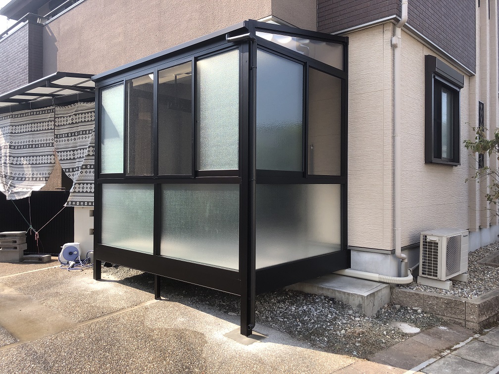 | 施工内容 | サンルームの施工 ブロック塀撤去 室外機移動 |