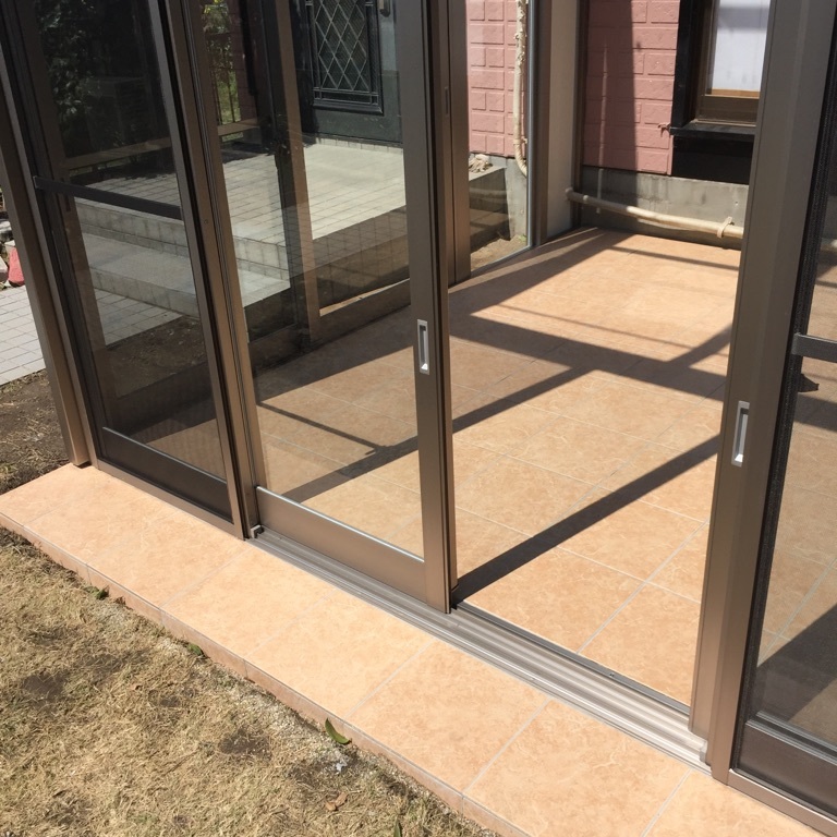 ルームトラス土間納まりタイル仕上げでのご依頼です。サンルームといえば床納まりが多いイメージでしたが、今回のこの土間納まり、すごく綺麗でかっこいいなと思いました。シャッター部も加工してます。重厚感があり、メカニックな感じが大変かっこいいですね!