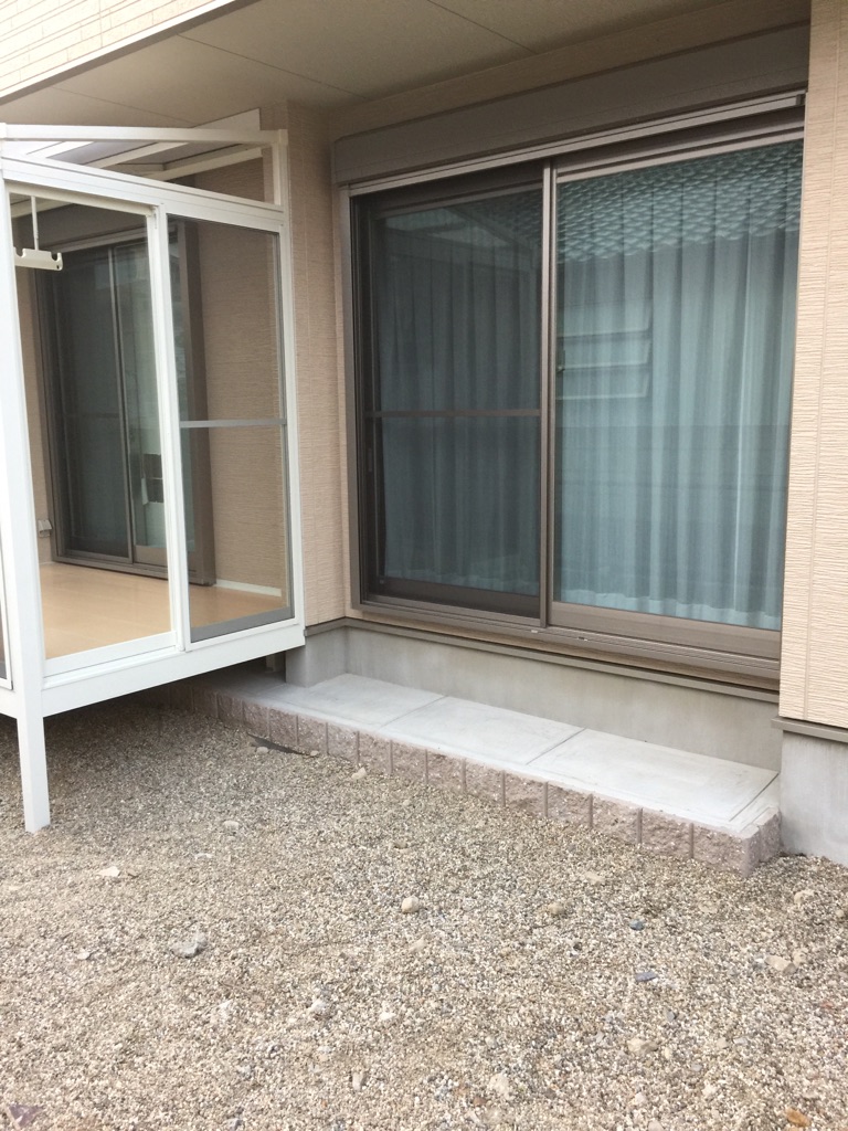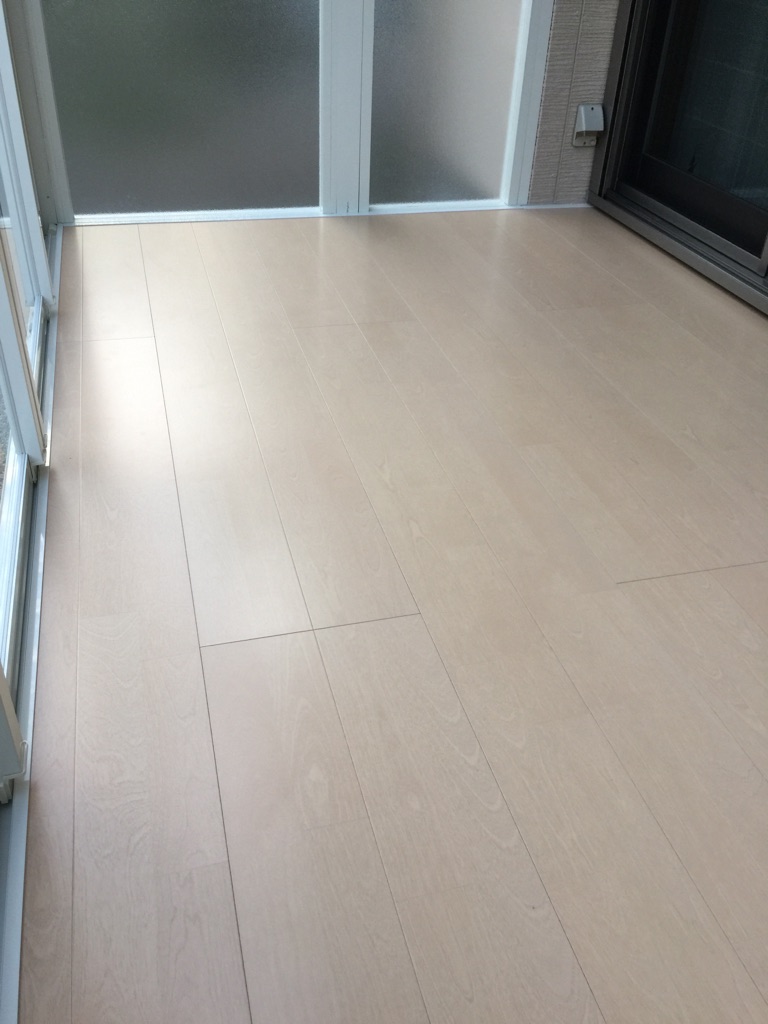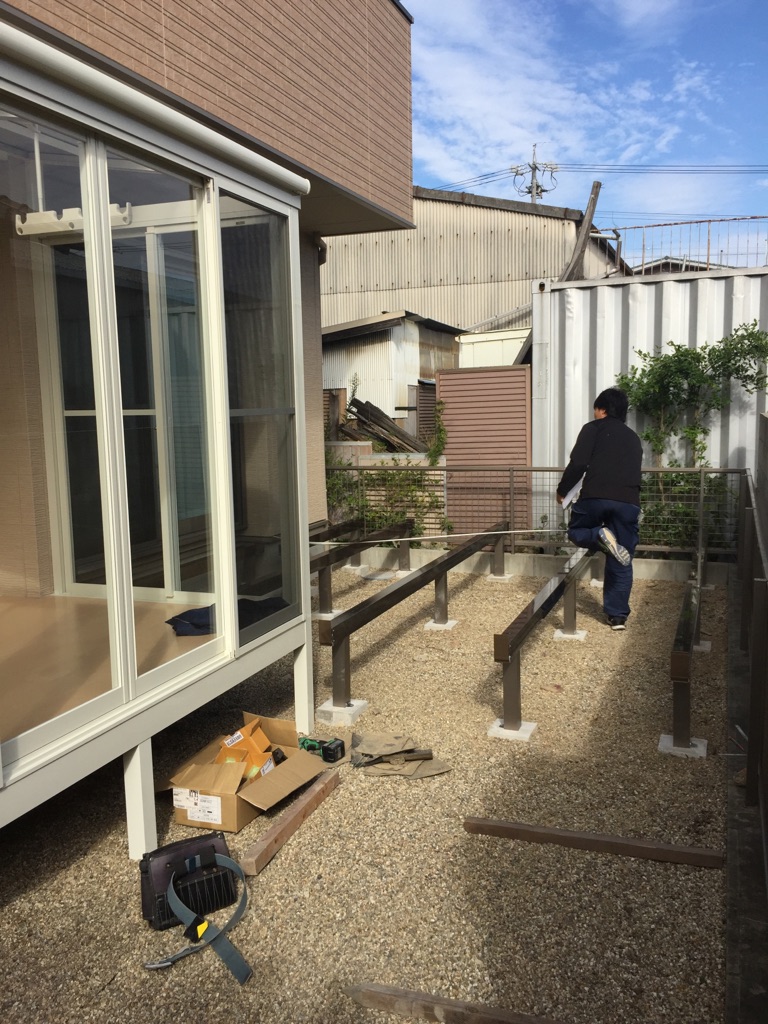 言葉で説明するのは少し難しいのですが、建物のベランダや壁が90㎝とか30㎝とか出ていて、サンルームを設置するサッシの場所はその分奥にある、という現場がなかなか多いです。その場合、ベランダのところから取り付けて床を延長することがよくあります。今回もそうでした。