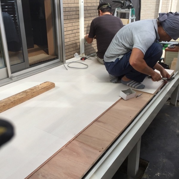 相変わらず人気のフローリング仕様。フローリングはカタログ非掲載のサンルーム愛知オリジナルプレゼンツ!豊富な種類の中からお選びいただけます。お選びいただいたのはクリアシルキーのホワイト色のフローリング。本体もホワイト色なのでピッタリですねー。