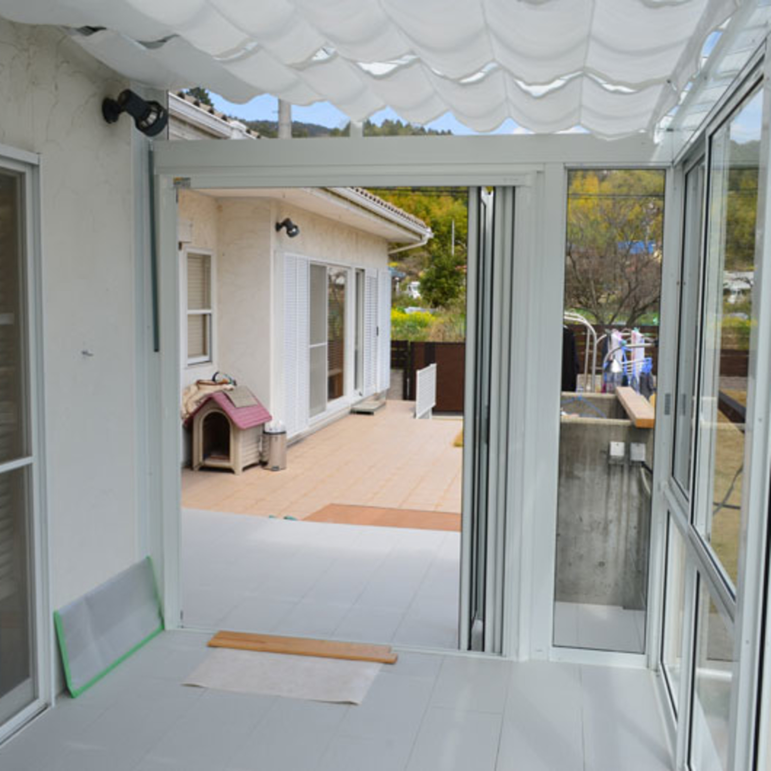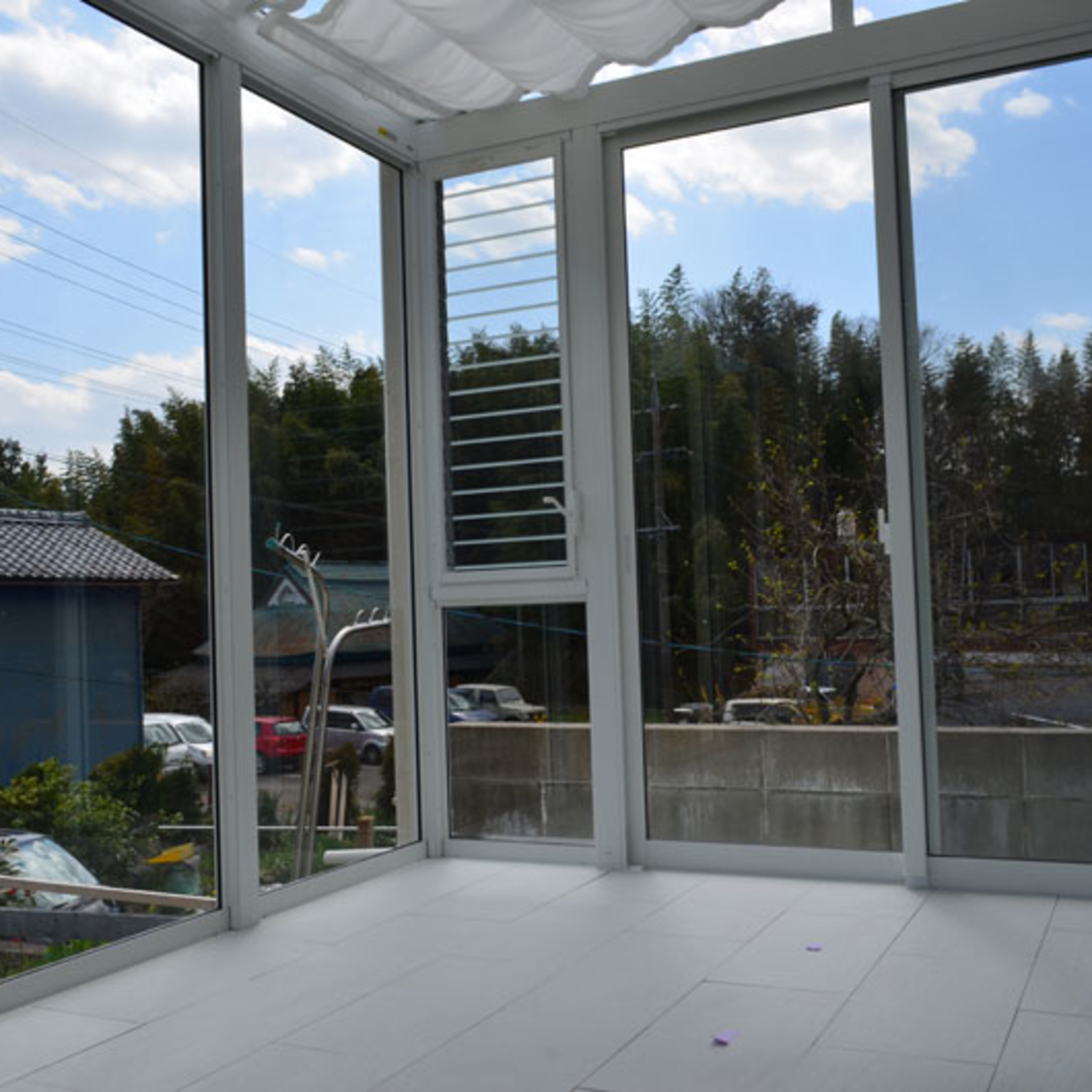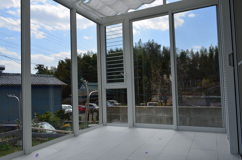 サンルームを外から見る機会はあると思いますので、参考までに中から撮った写真もアップしております。