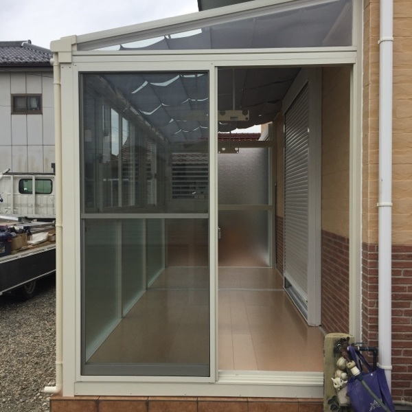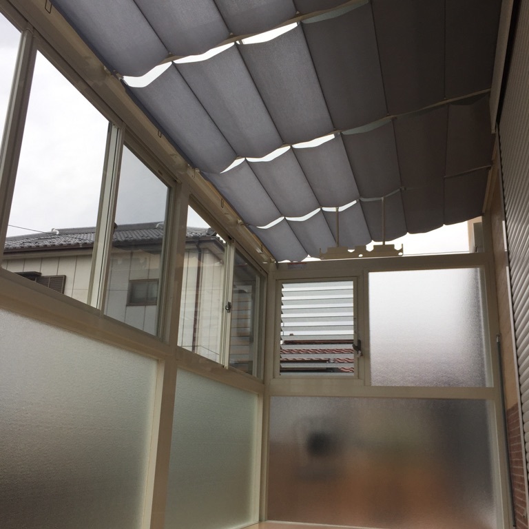 内部日よけも設置。「本当にまるで一部屋増えたみたい」と嬉しいお声いただきました!