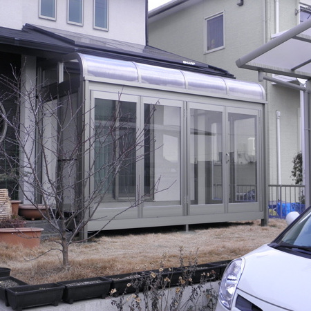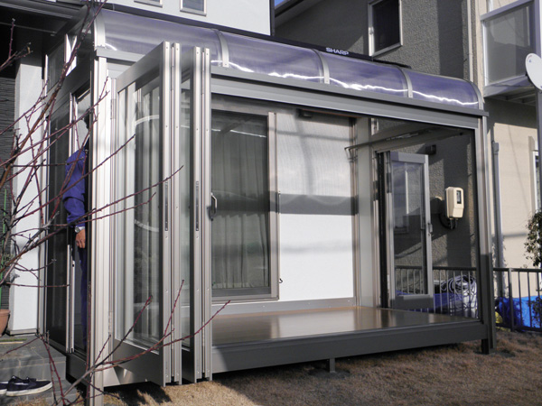 サンルームと太陽光発電とエコキュートとIHのご注文、誠にありがとうございました。サンルームはトステムのルームトラスです。