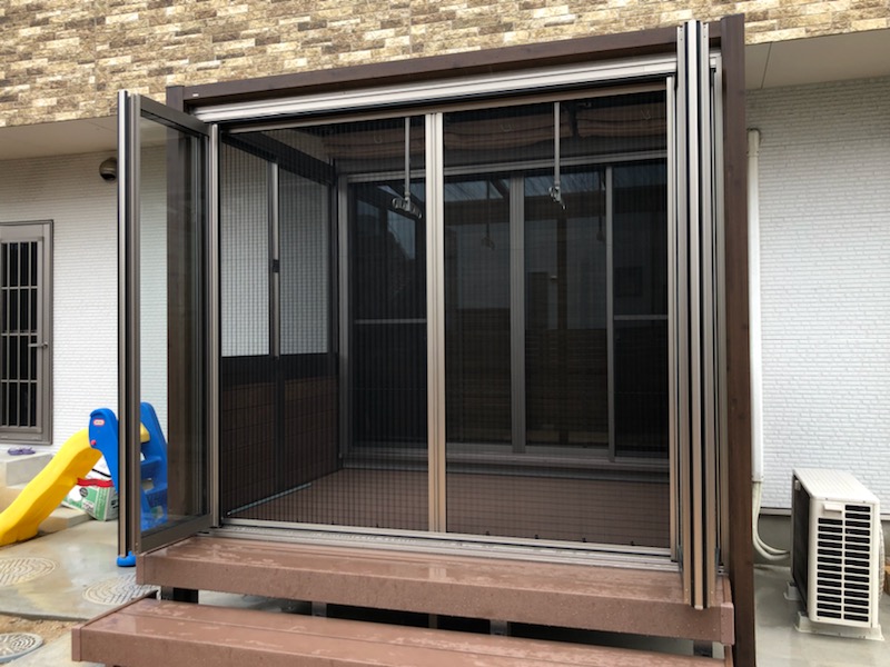 床は人工木を採用!網戸は通常のものではなく収納網戸!