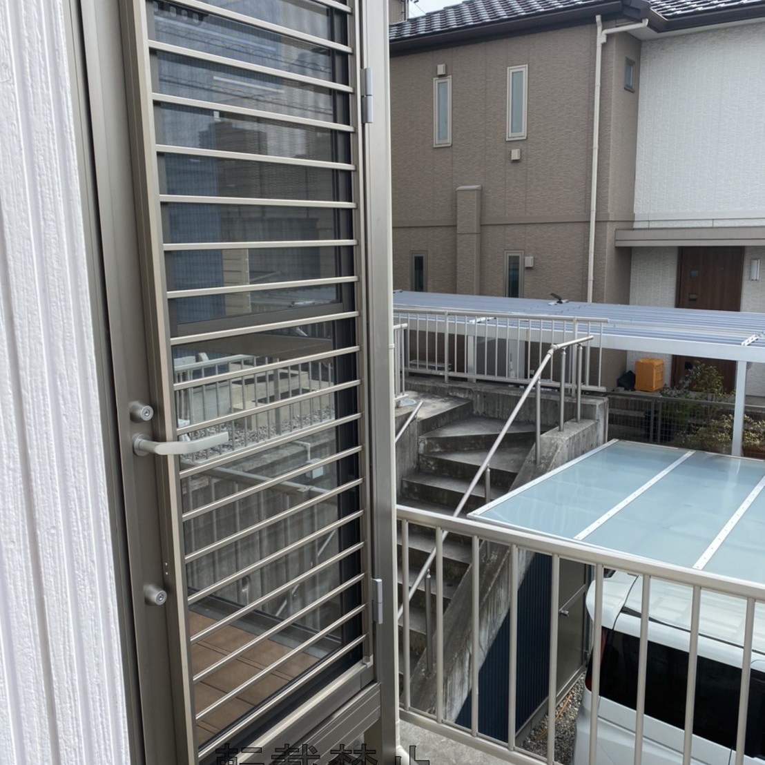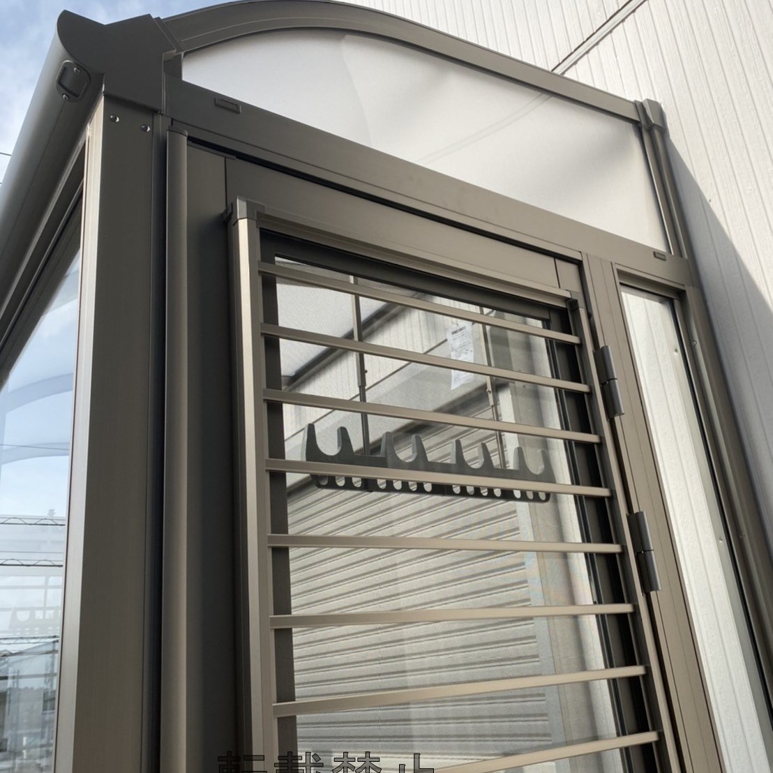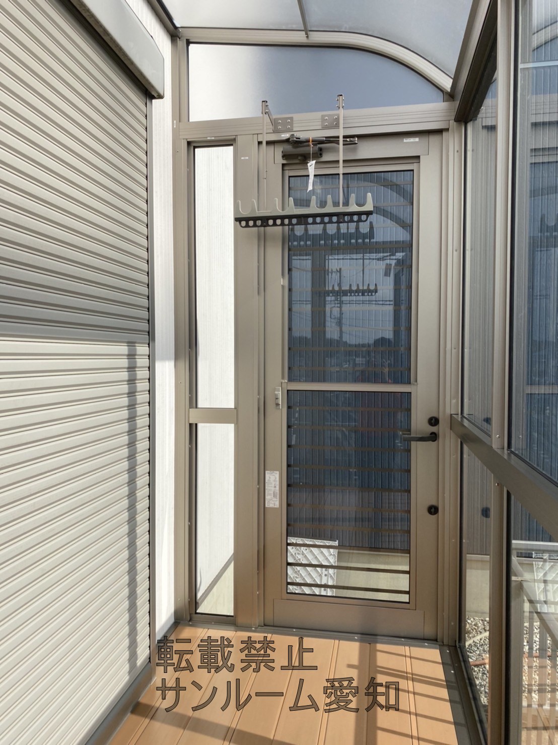 三協アルミのサンルーム、晴れもようwithの施工例です!ハイタイプがあるためこちらの商品を採用しています。前面は落下防止のため、開かないFIX窓仕様にしています。換気できるように両側面は換気機能付きのドア、彩風ドアを採用しています。網戸もついています。